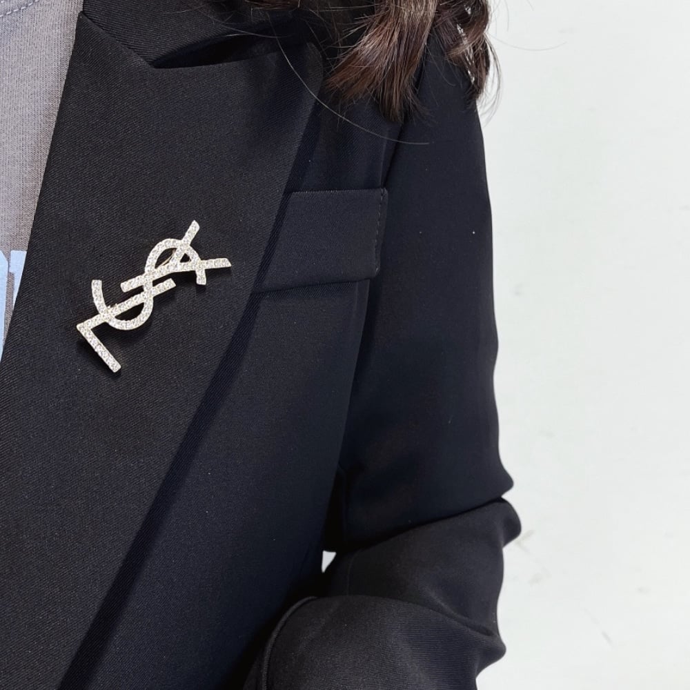 Saint Laurent Ysl Brooch Silver With Stones Attached