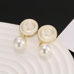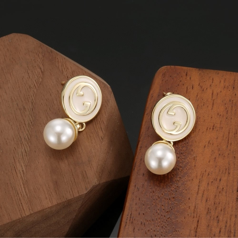 Gucci Blondie Pearl Drop Earrings Gold Tone 774612 I9757 8495