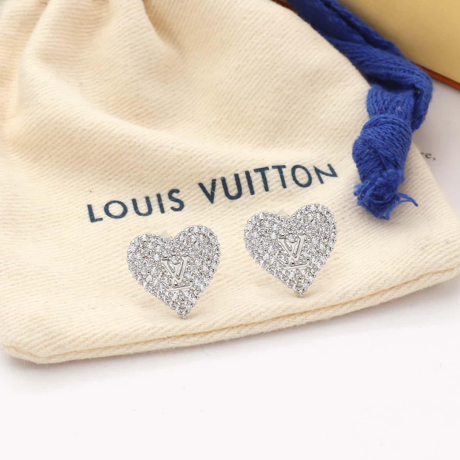 Louis Vuitton Sparkling Heart Stud Earrings White Gold Tone