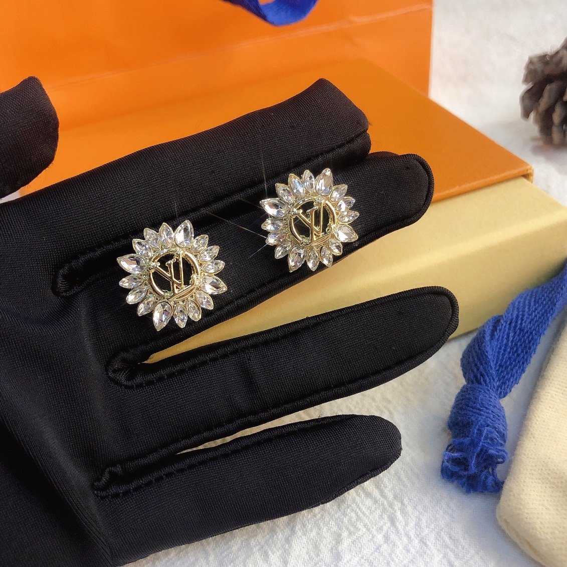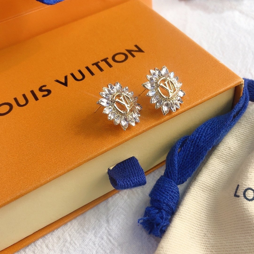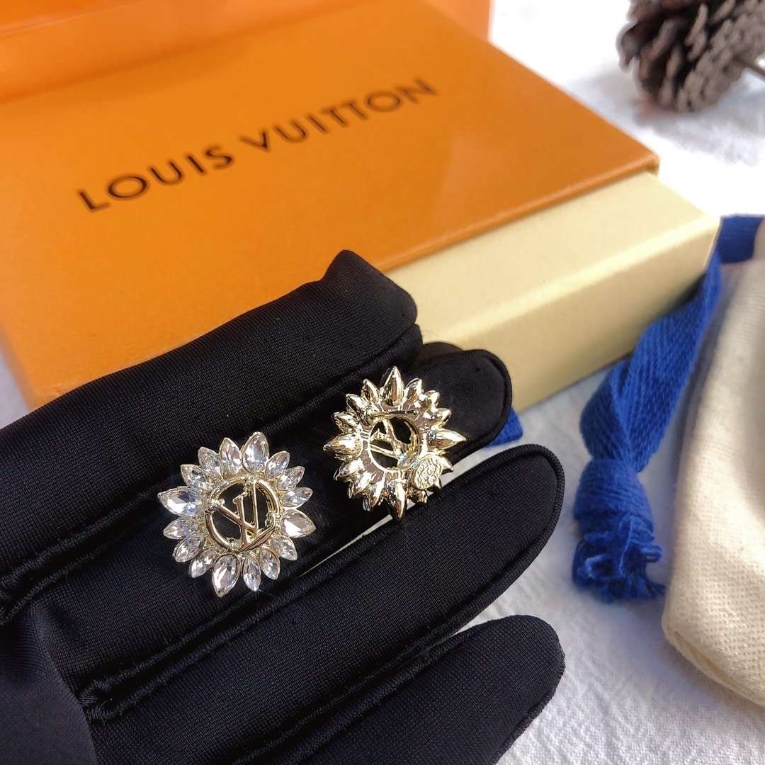 Louis Vuitton Sunburst Crystal Earrings Gold