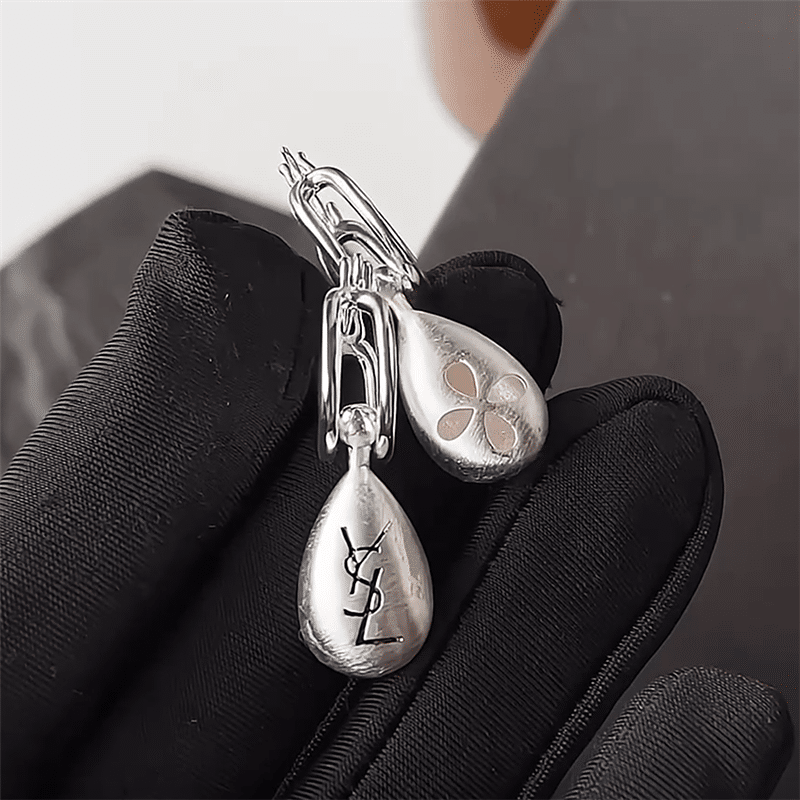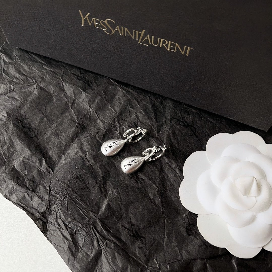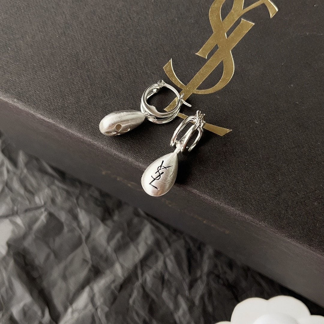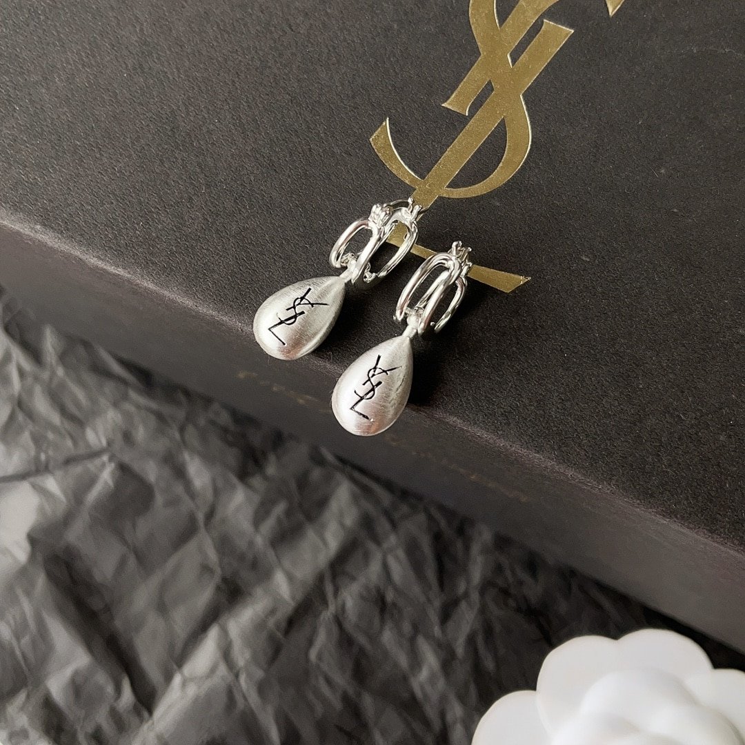Saint Laurent Teardrop Earrings With Ysl Logo Silver