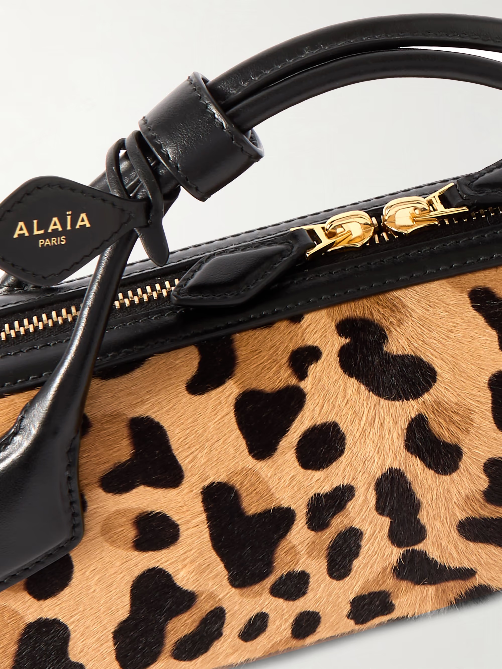 Leopard Print Calf Hair Top Handle Bag 30cm