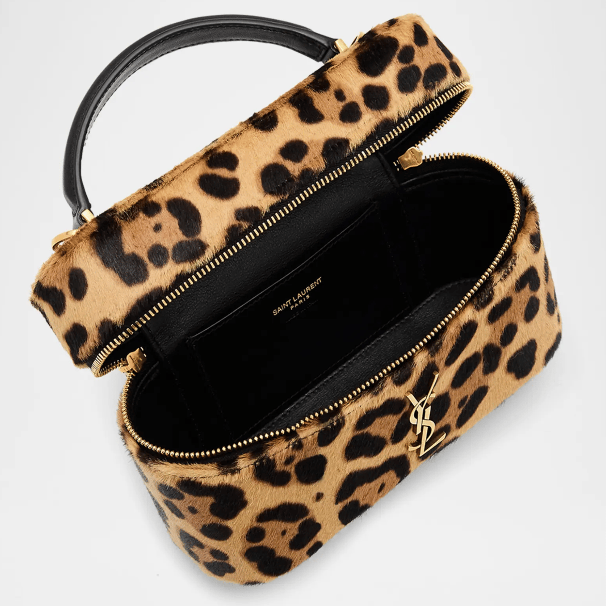 Saint Laurent Leopard Haircalf Vanity Bag with YSL Monogram 18cm