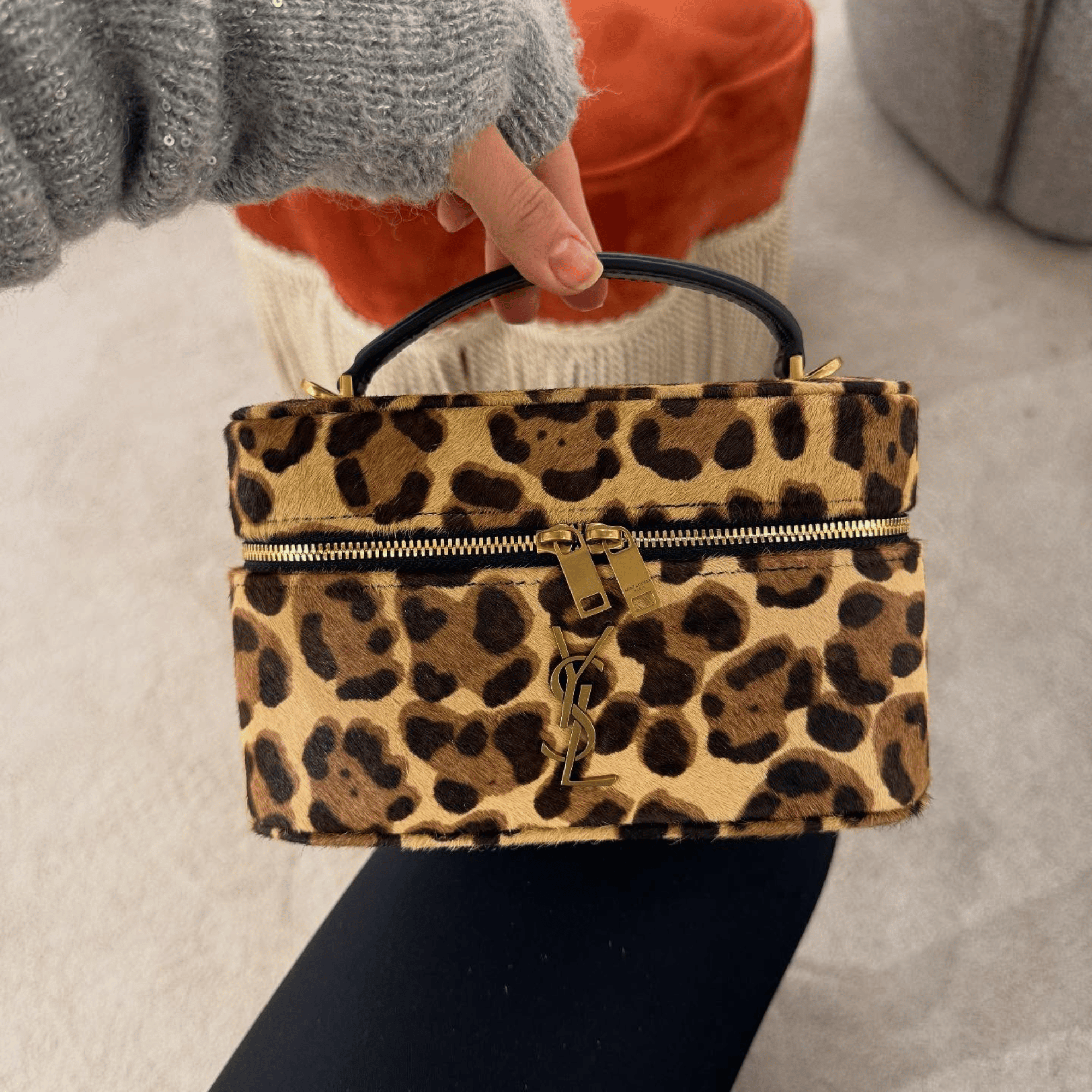 Turn heads with this Leopard Haircalf Vanity Bag with YSL Monogram – a bold yet timeless piece that exudes luxury and confidence.