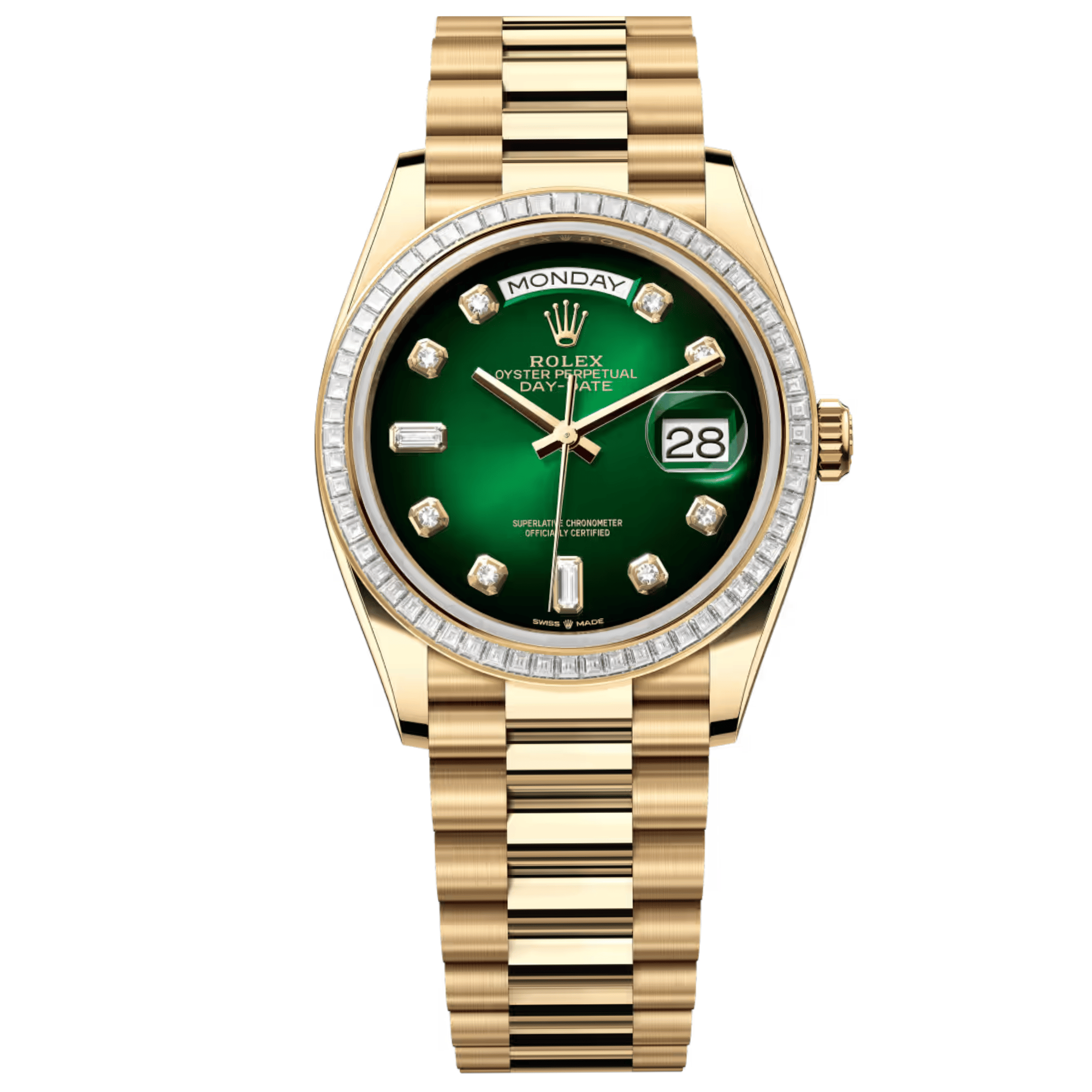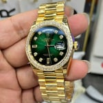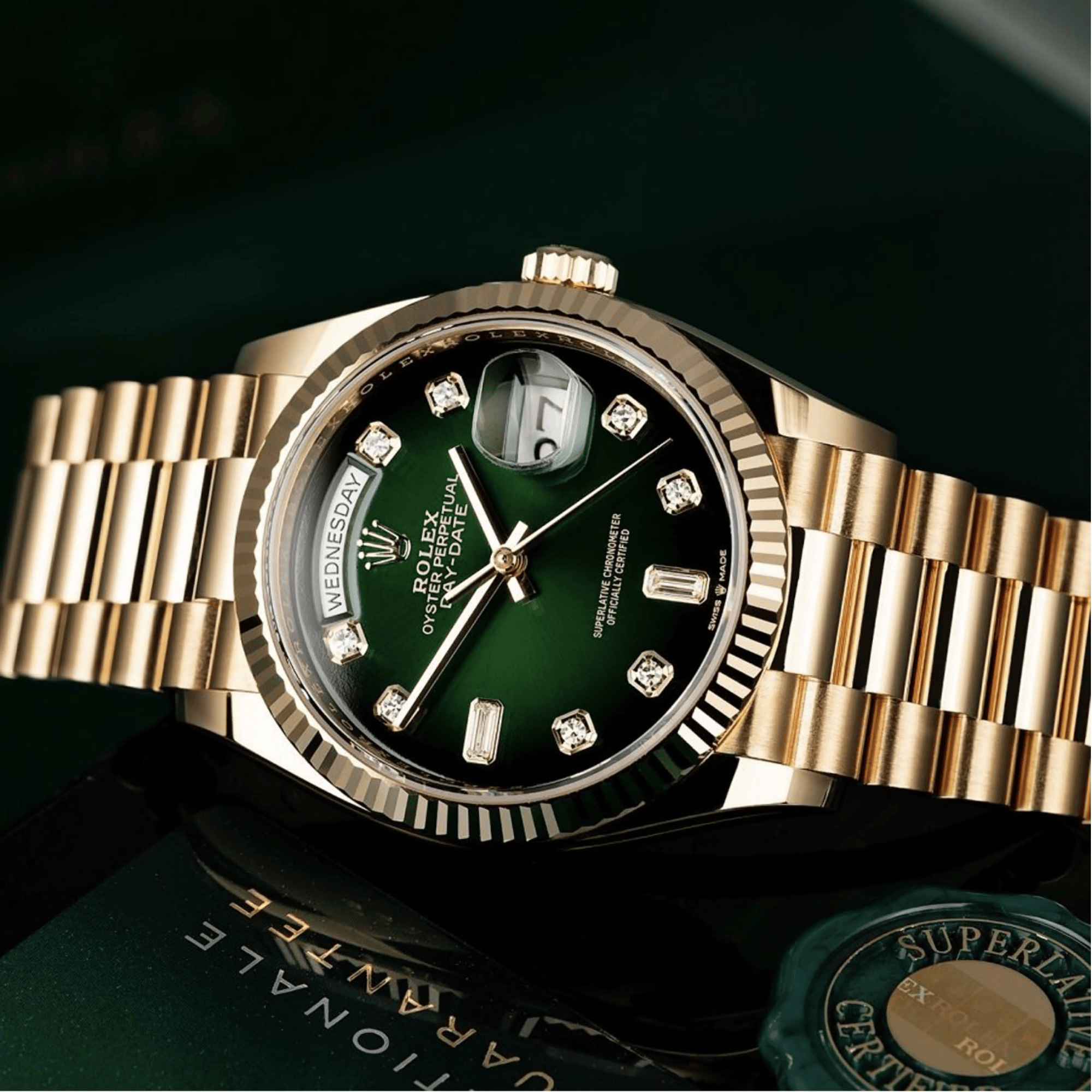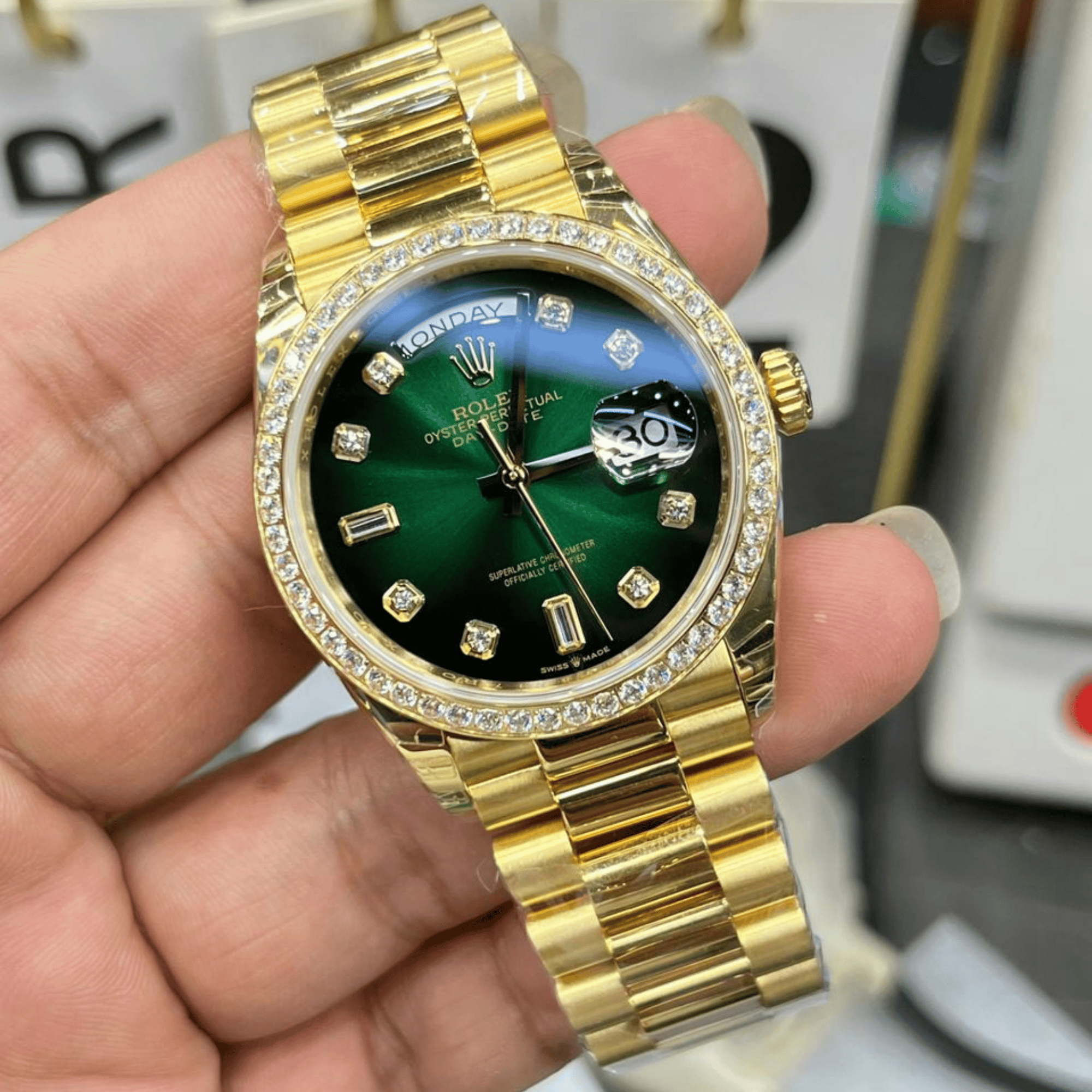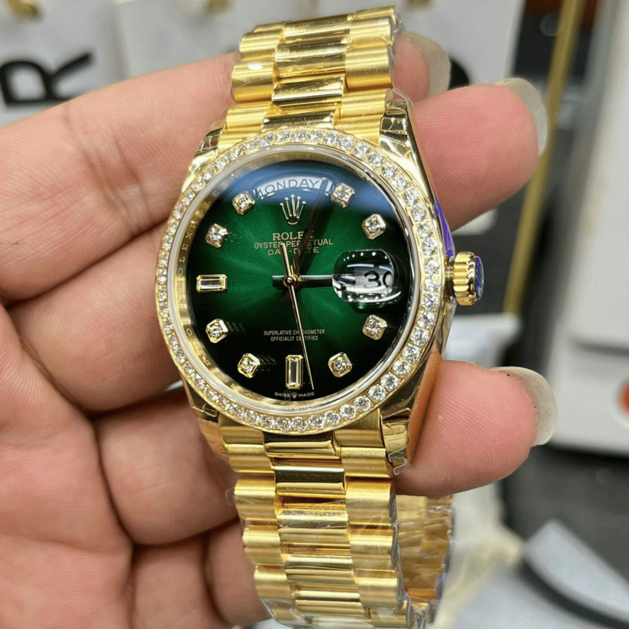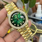 [SUPER CLONE] Rolex Yellow Gold Day-Date Diamond Bezel Onyx Green Dial President Bracelet 36mm