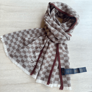 This Chanel scarf is a sophisticated and luxurious accessory, with an elegant design that combines the brand’s iconic CC logo with a subtle interwoven pattern.