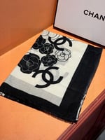 Chanel Silk Shawl Camellia Motif White-Black For Women 200cm