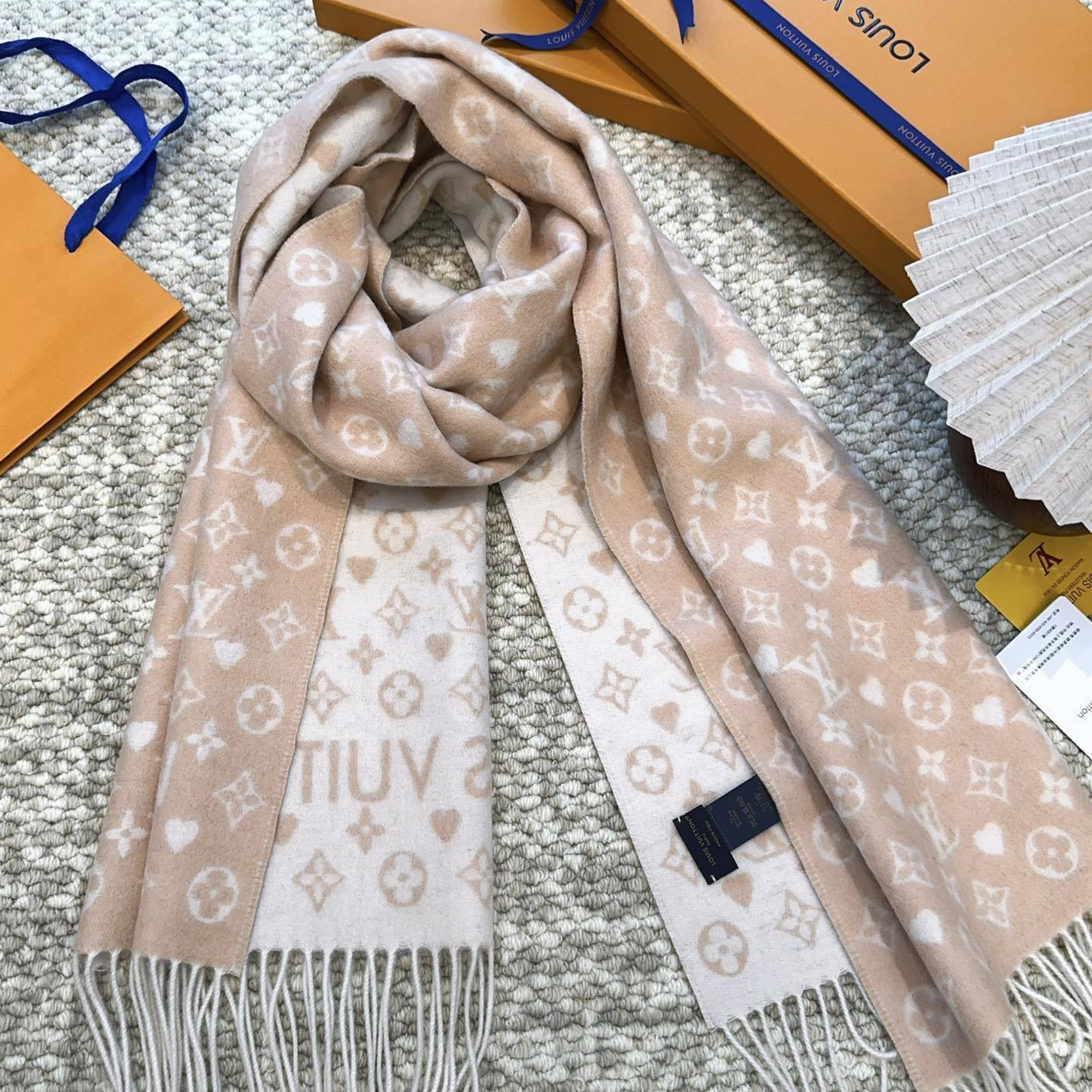 Louis Vuitton Monogram Heart Cashmere Scarf Beige For Women 180cm