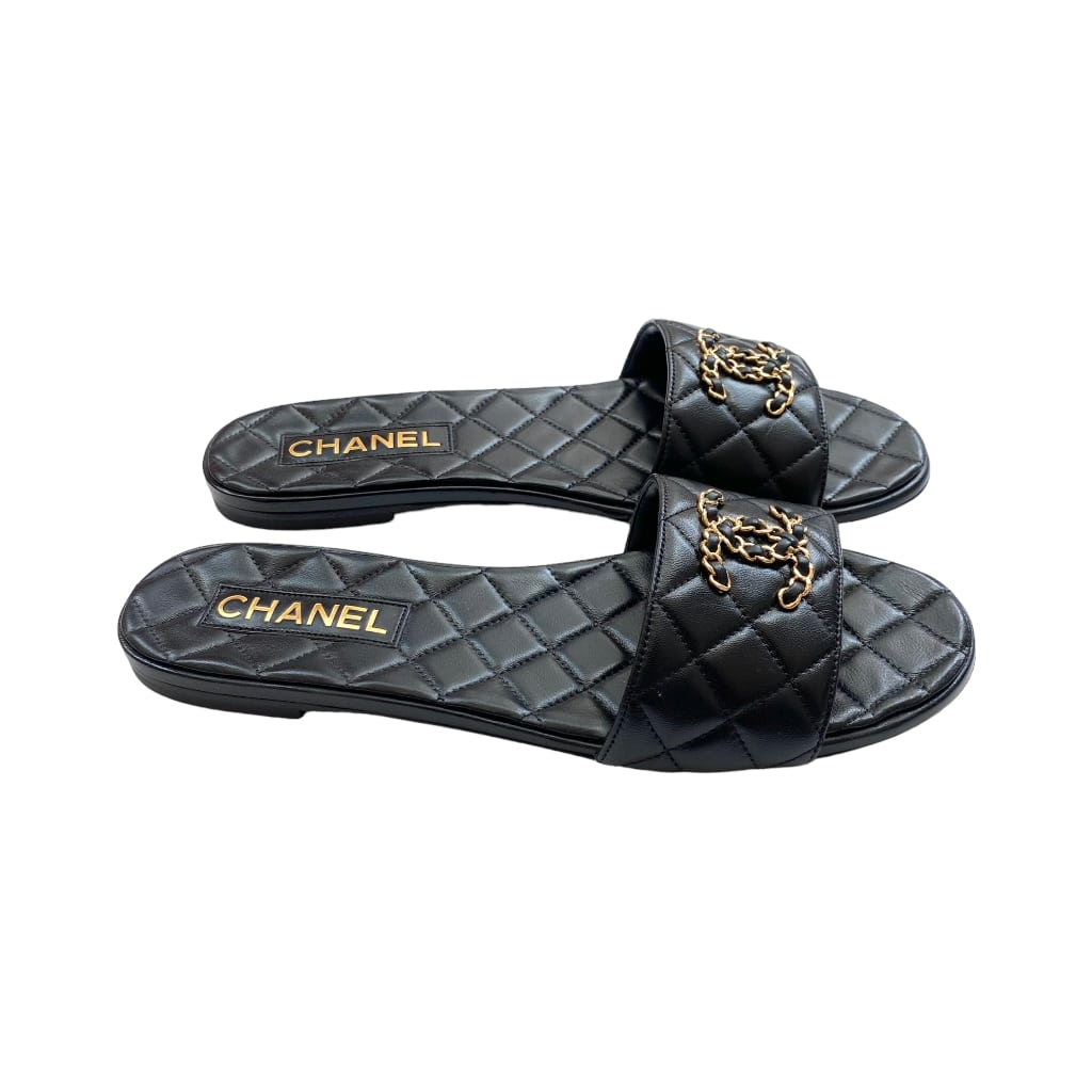Chanel 23P Quilted Cc Chain Mule Sandal Black G39954 X56940 94305