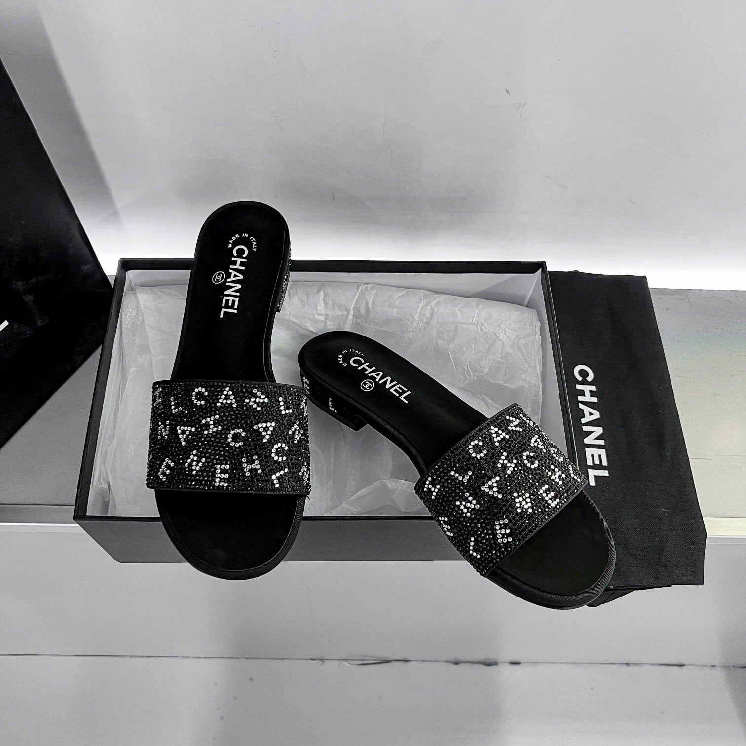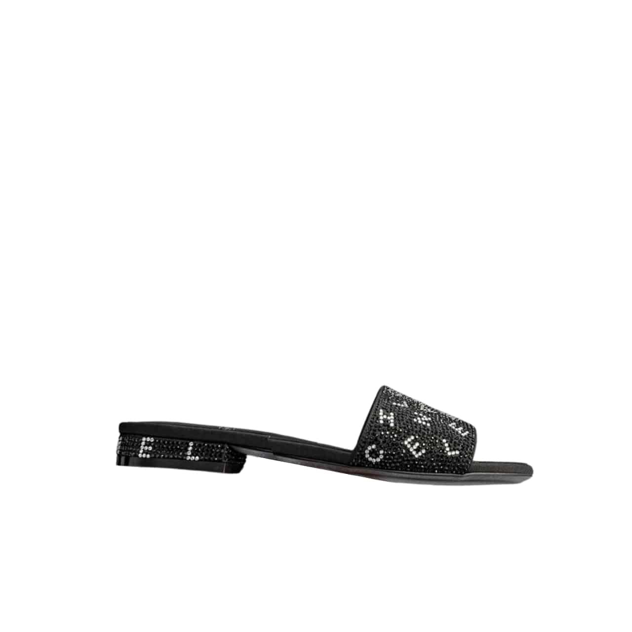 Chanel 24P Beaded Diamond Logo Slippers Black