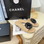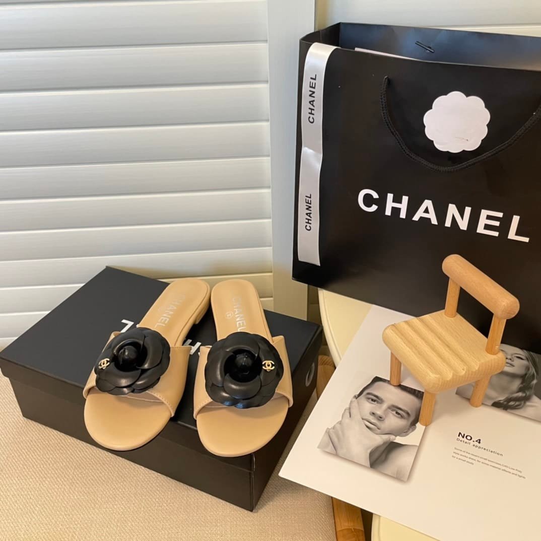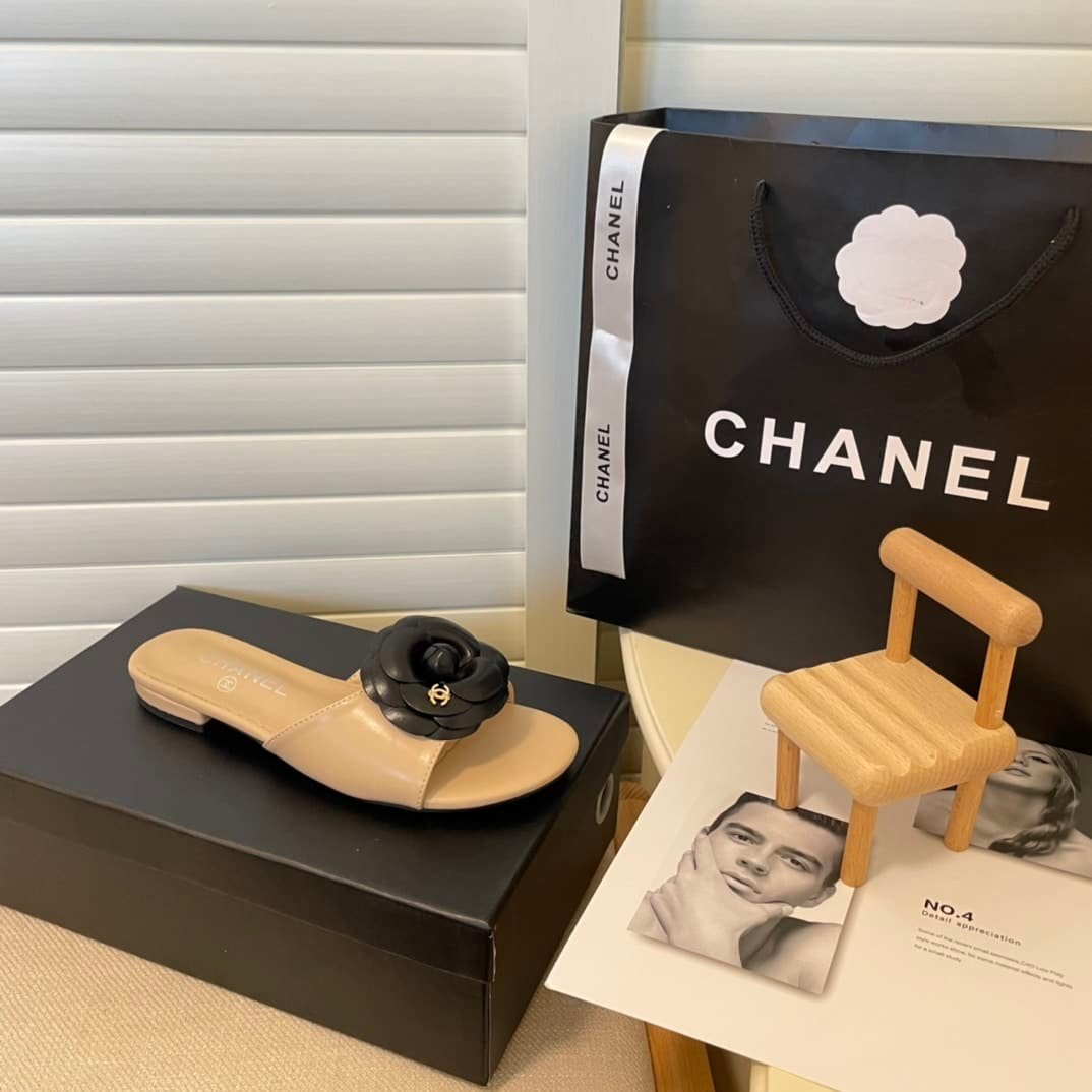 Chanel Camellia Slides Beige