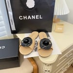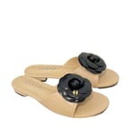 Chanel Black Camellia Slides Beige