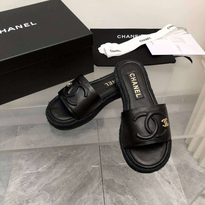 Chanel Shiny Pearl Crystal Cc Heart Thong Sandals Black G39674 X01000 94305