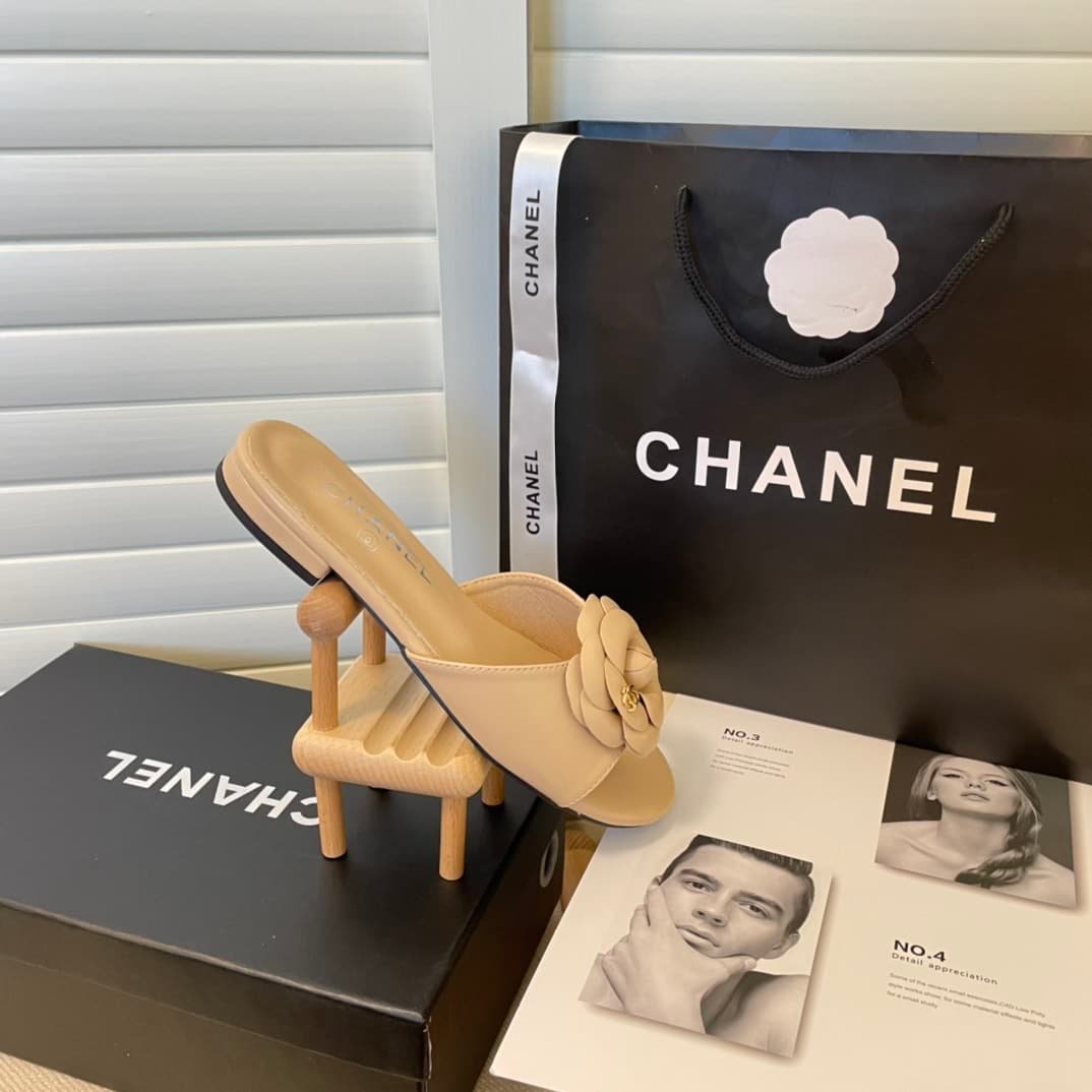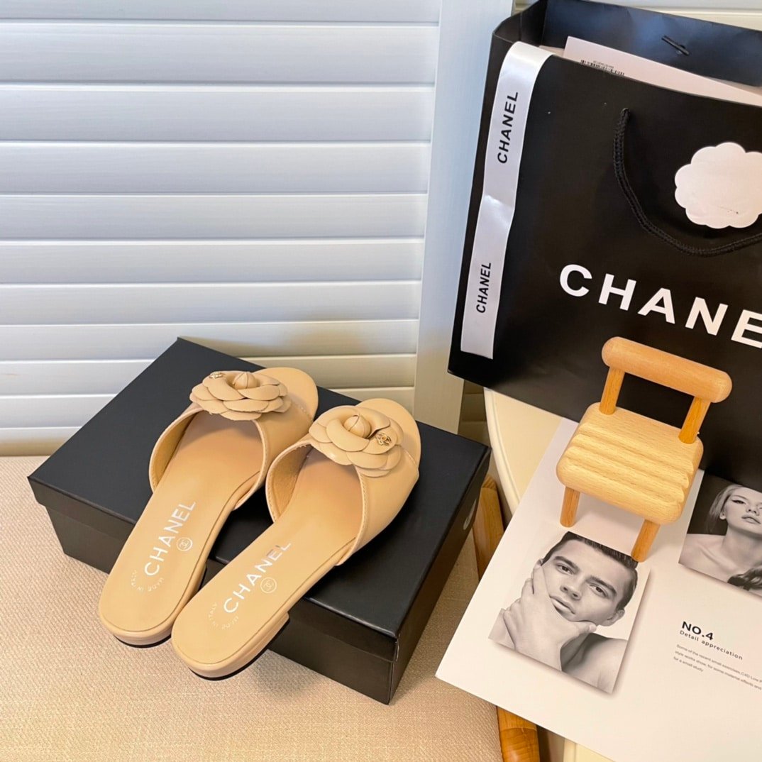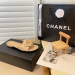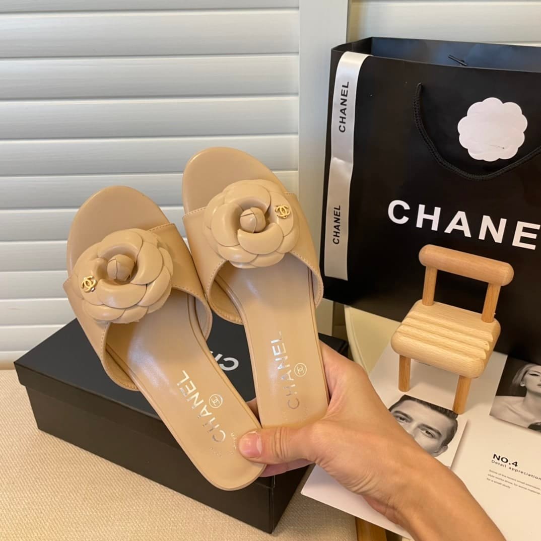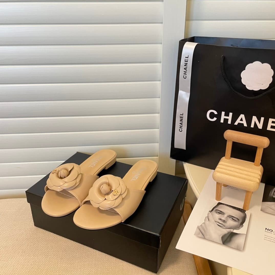 Chanel Camellia Slides Beige