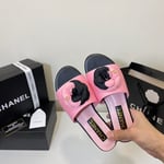 Chanel Jelly White Rubber Camellia Cc Logo Sandals Black