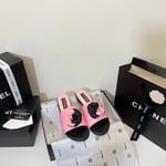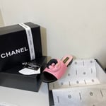 Chanel Shiny Pearl Crystal Cc Heart Thong Sandals Pink