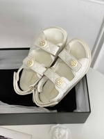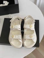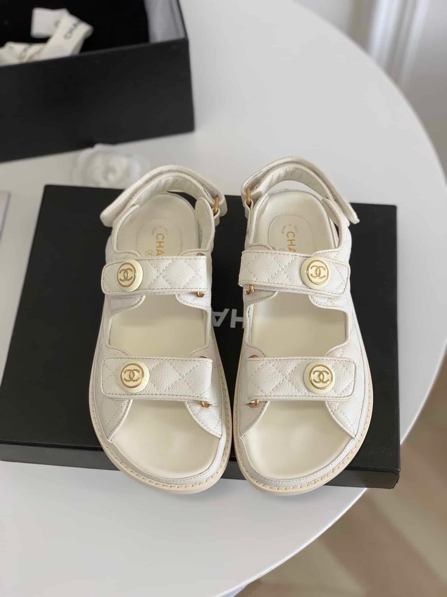 Chanel Cc Button Velcro White Sandals Grained Calfskin Leather