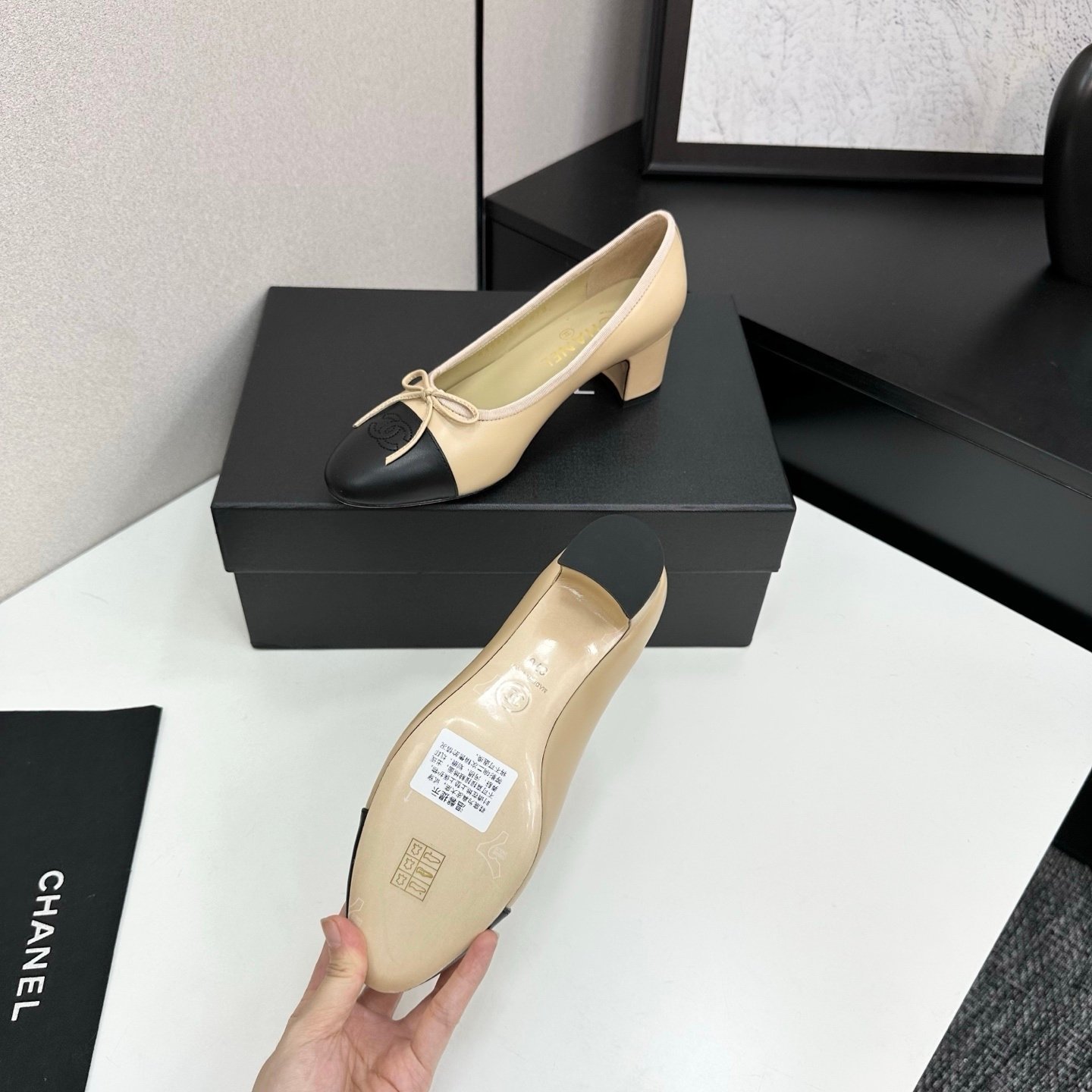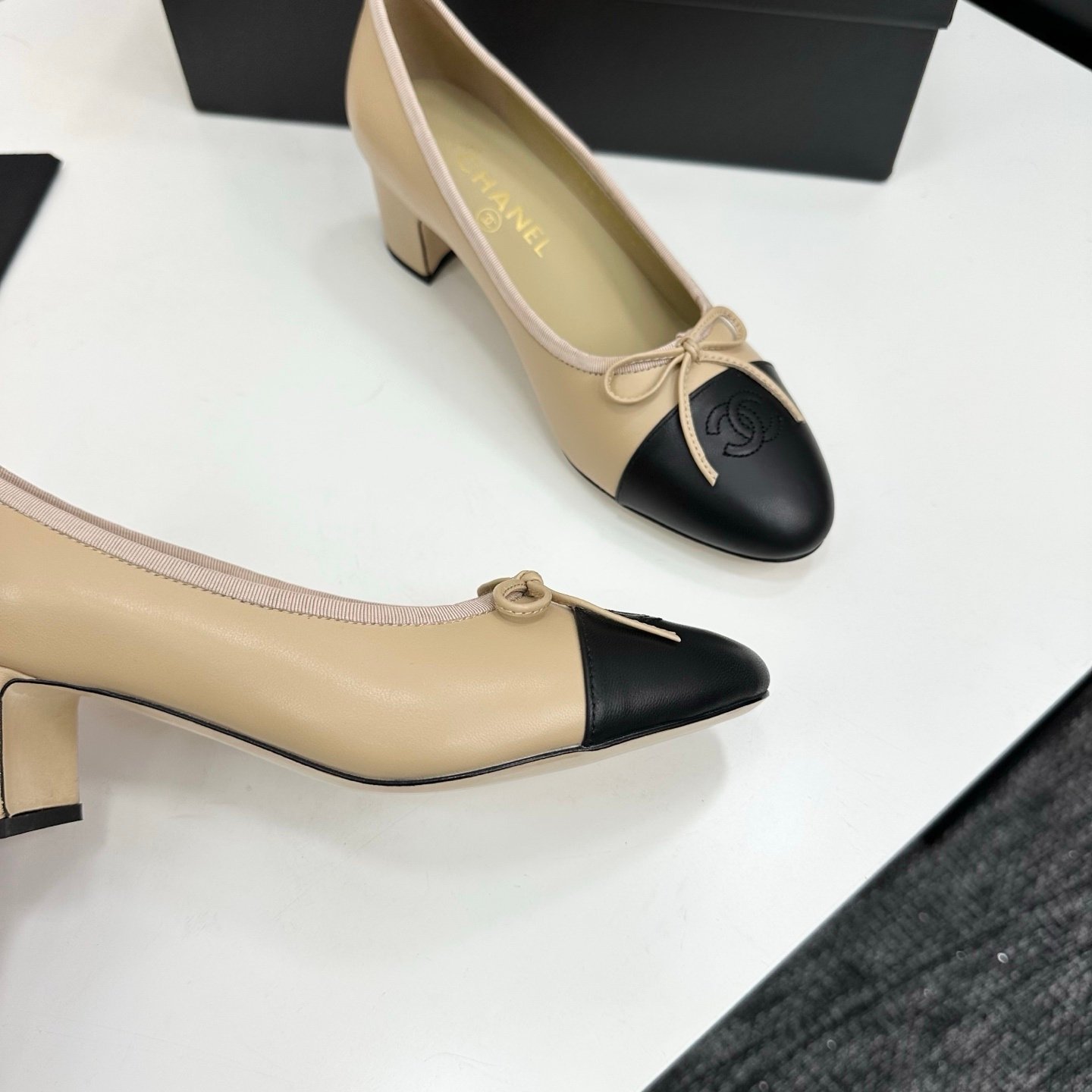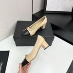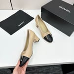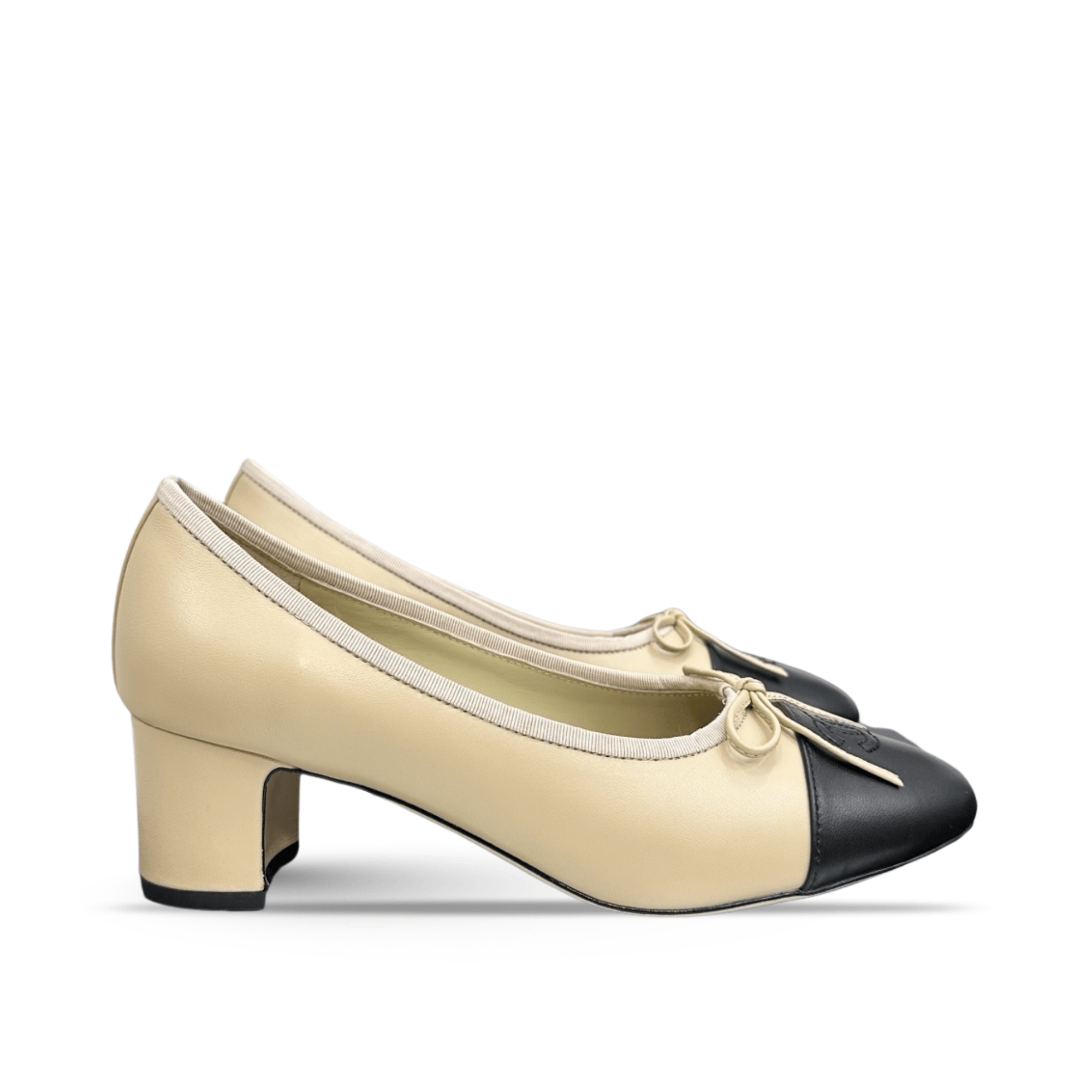 Chanel CC Cap Toe Mid Heel Pumps Beige/Black – Heel 4.5cm