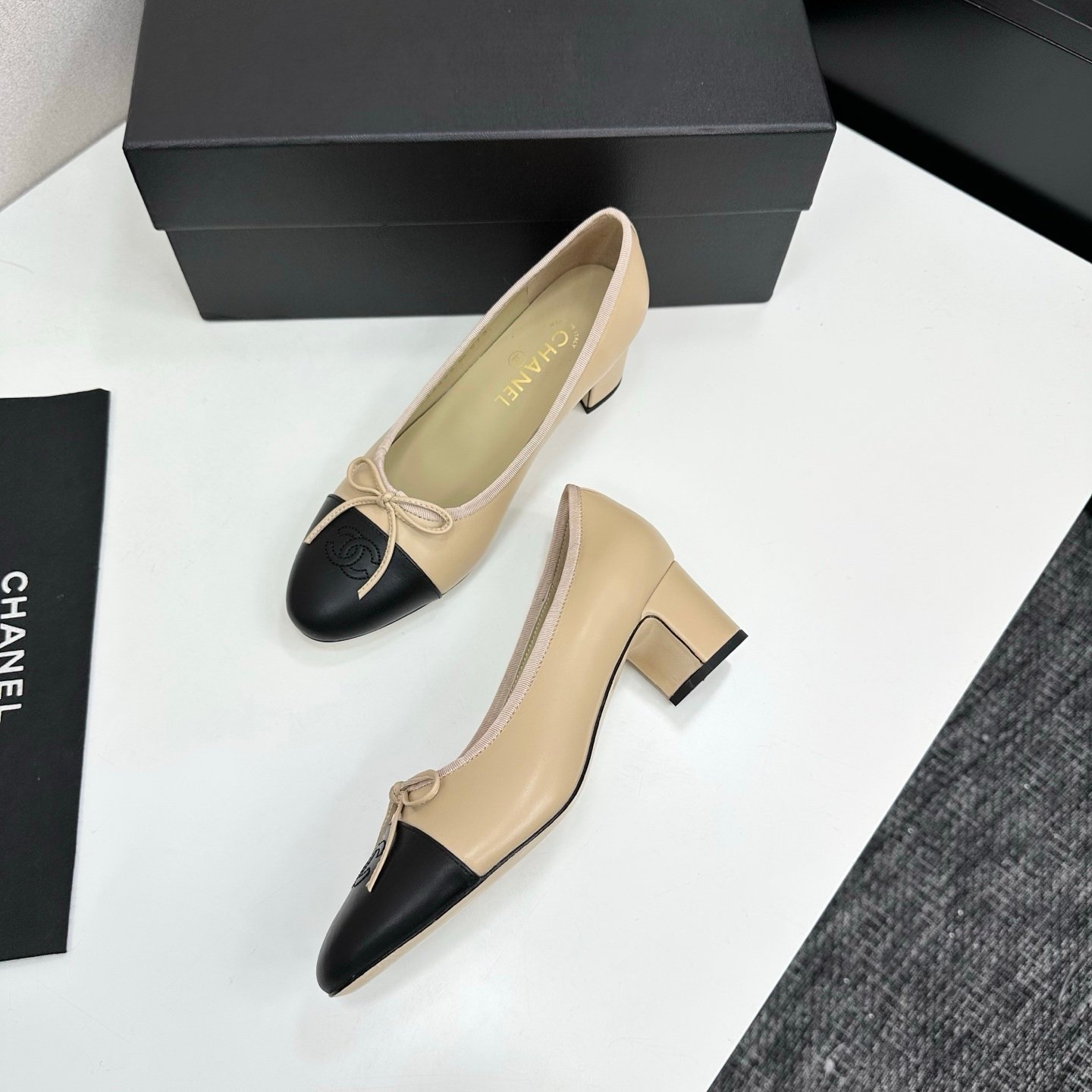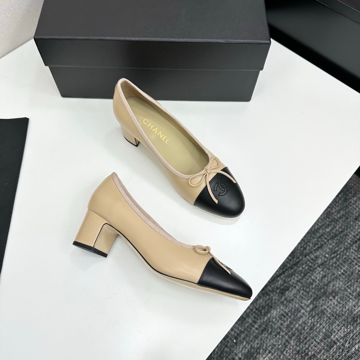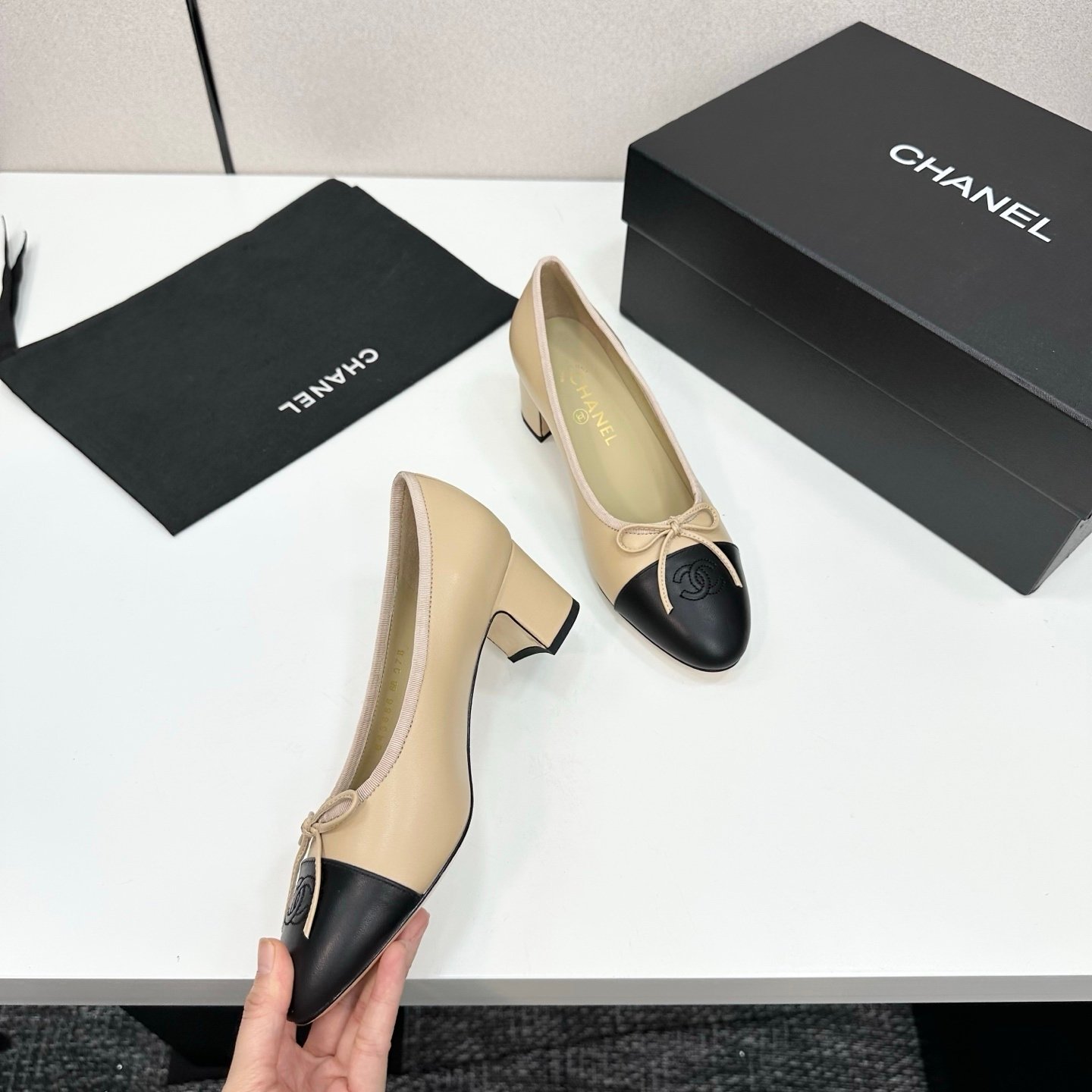 Chanel CC Cap Toe Mid Heel Pumps Beige/Black – Heel 4.5cm