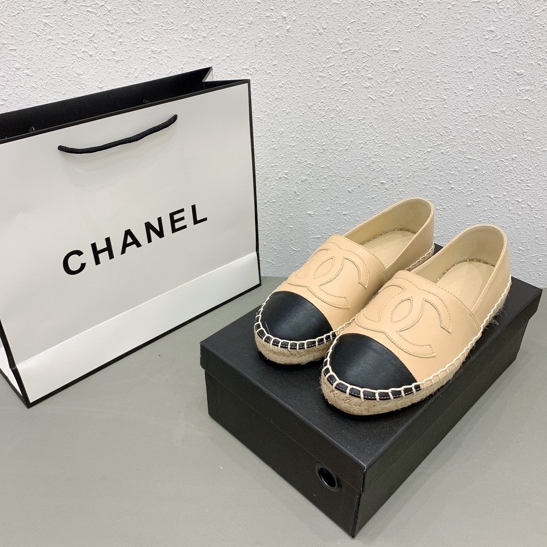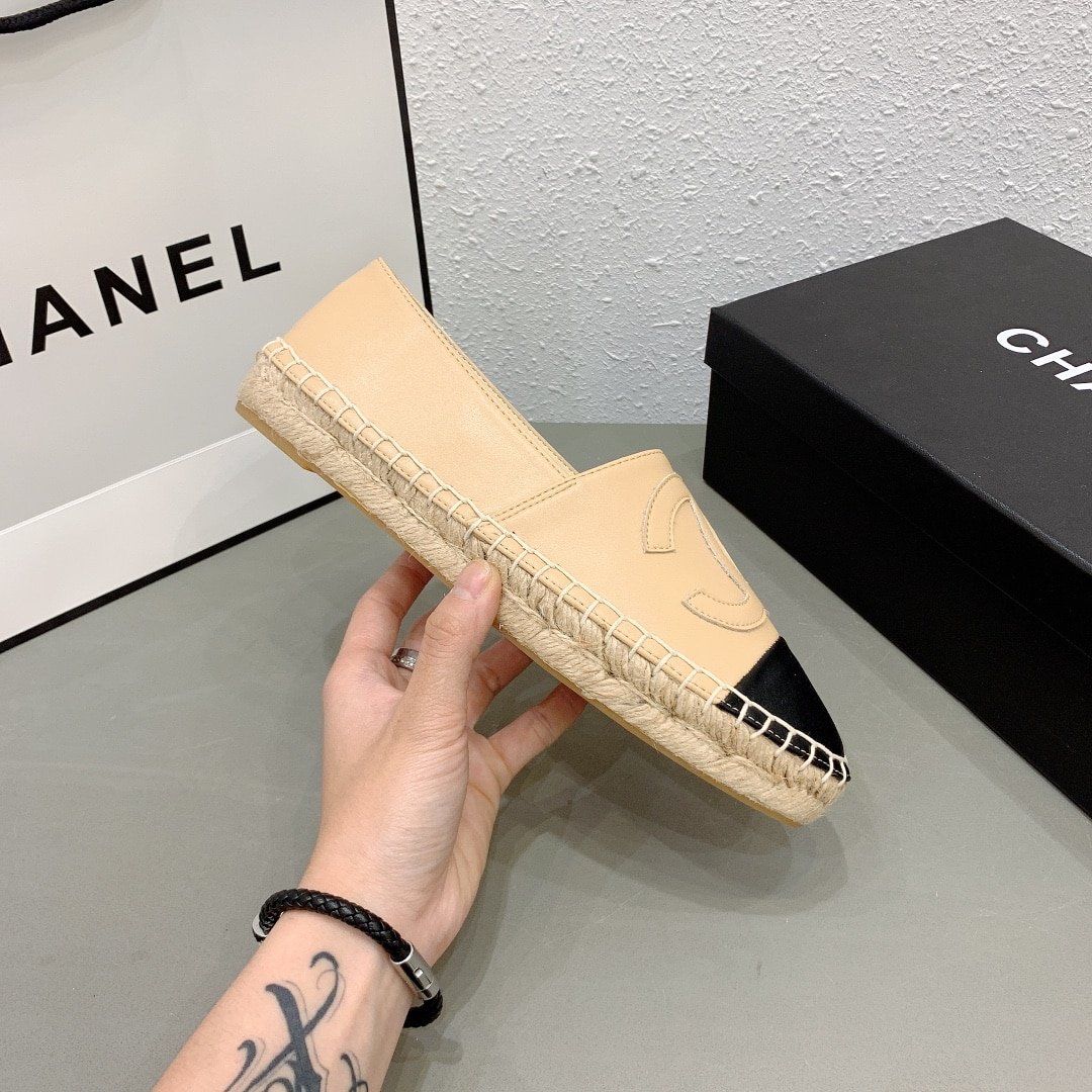 Chanel Cc Espadrilles Slip On Sheepskin Beige Black G29762 X01000 C0204