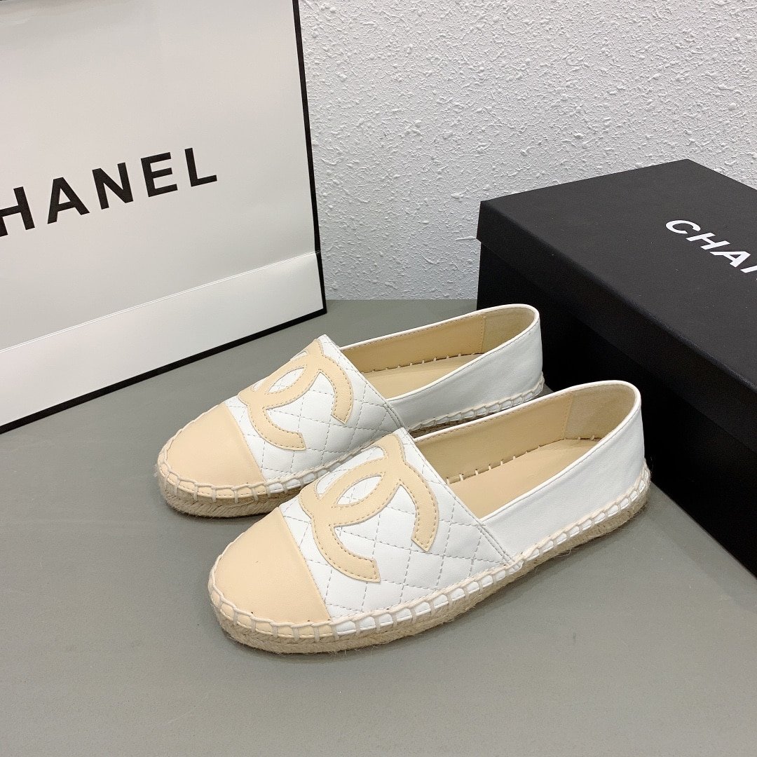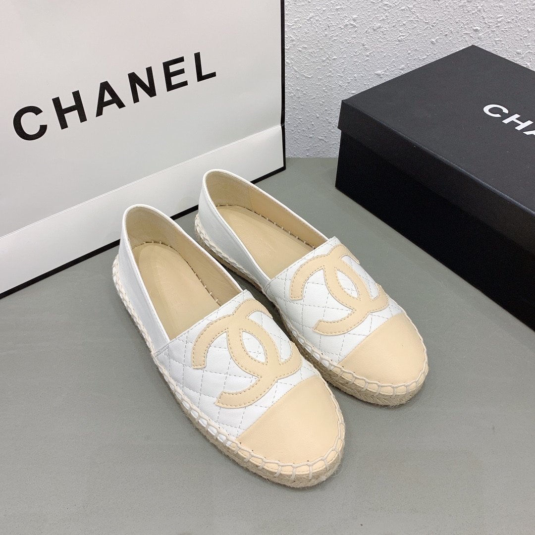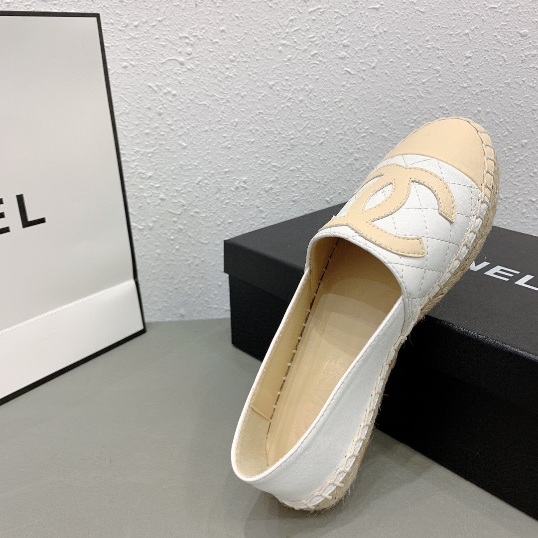 Chanel Embroidered Espadrille Leather Cap Toe Flats White