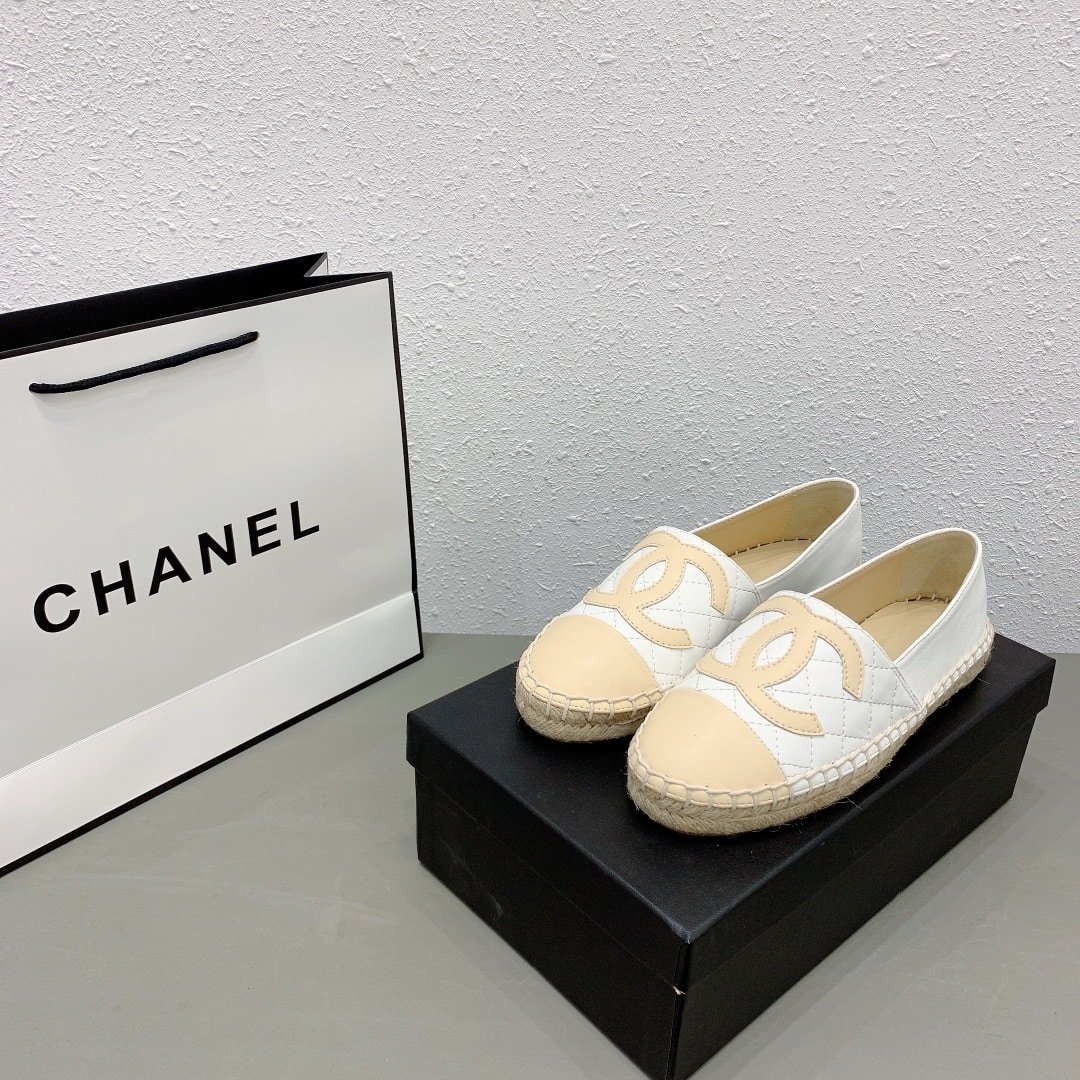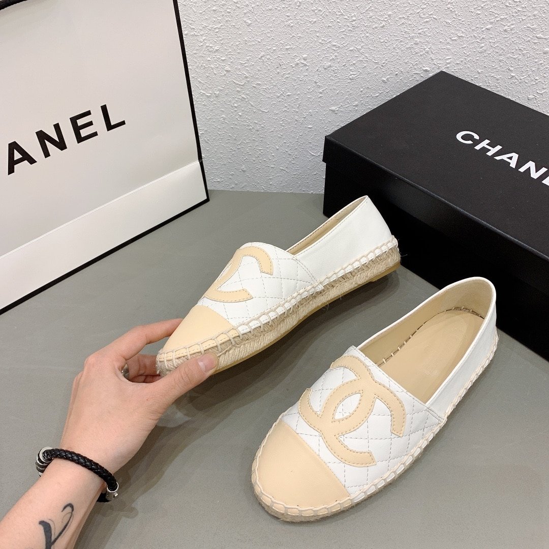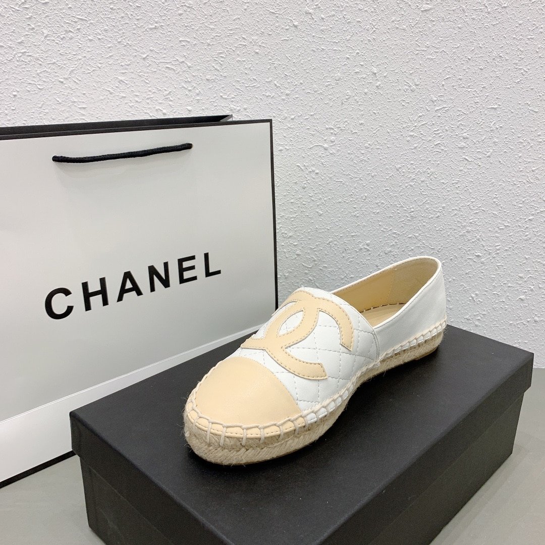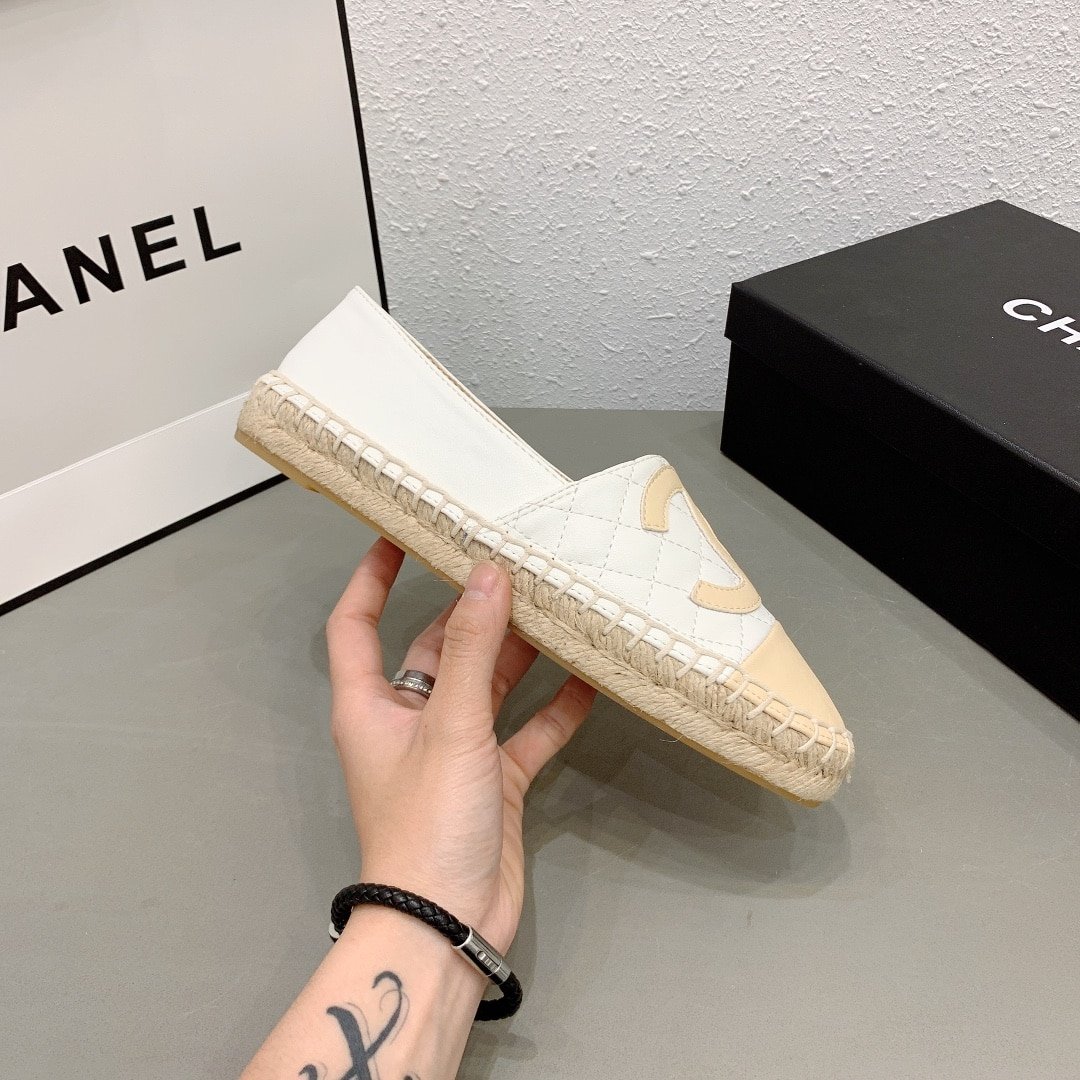 Chanel Embroidered Espadrille Leather Cap Toe Flats White