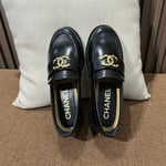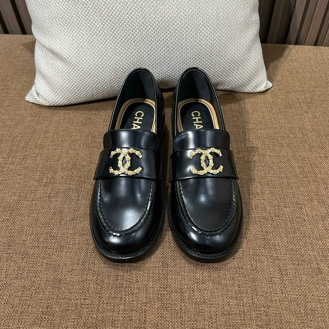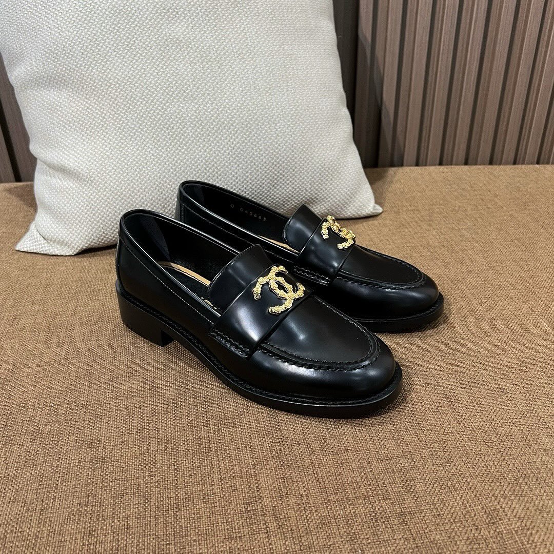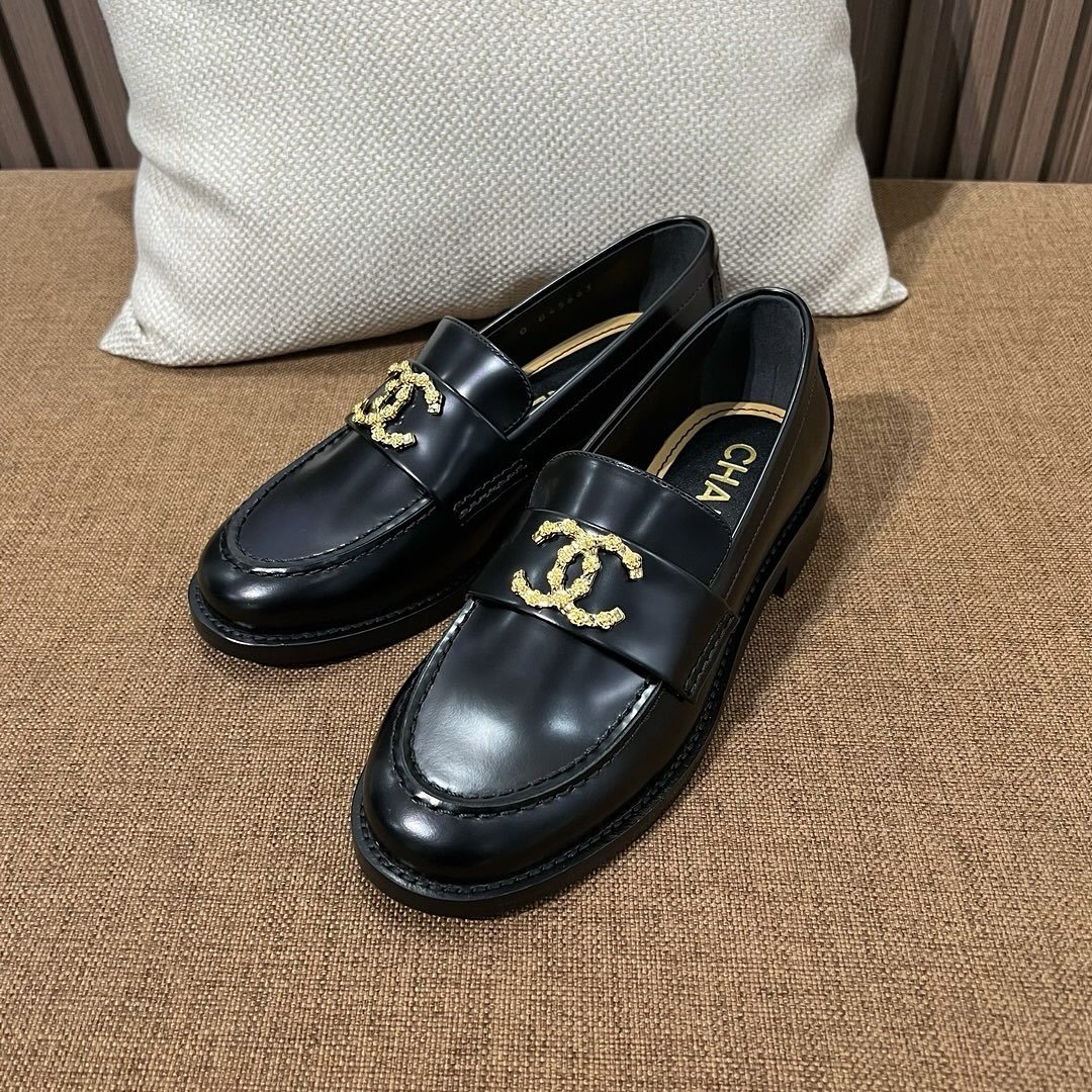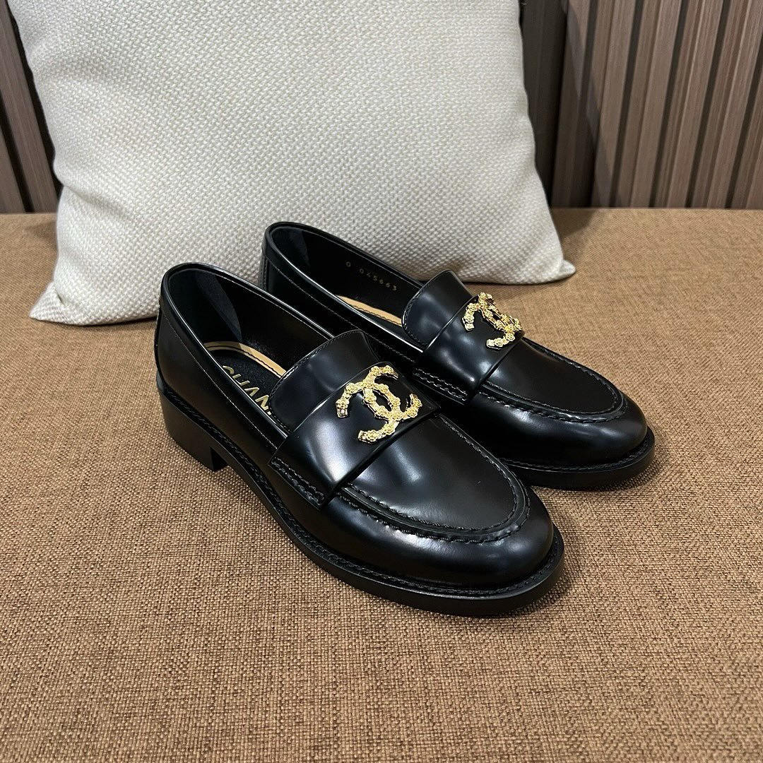 Chanel CC Loafers Black Calfskin with Metal Logo For Women