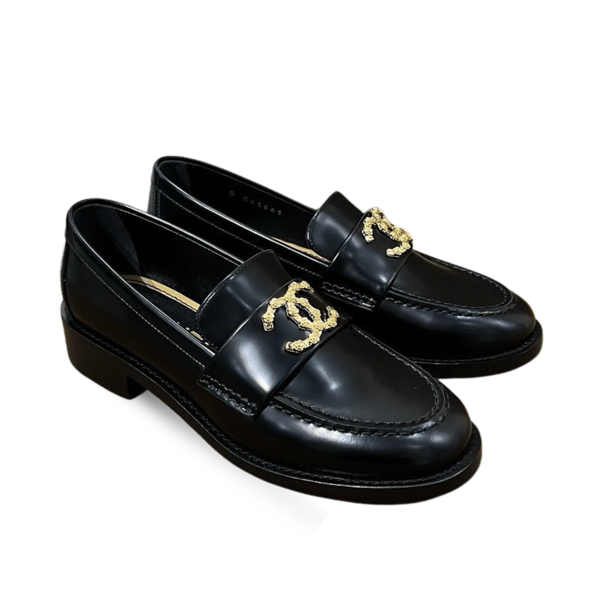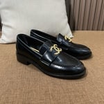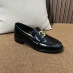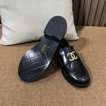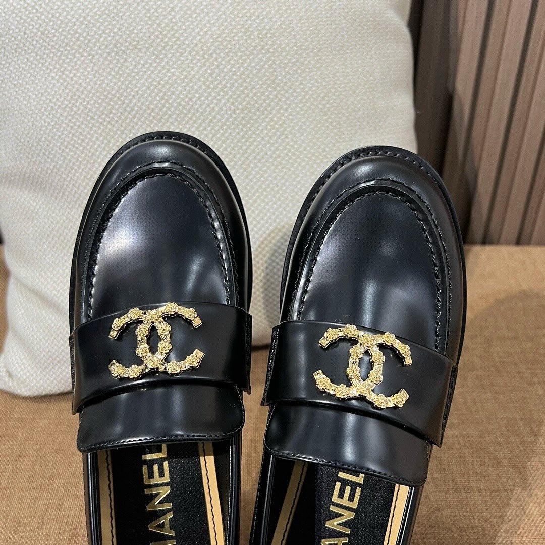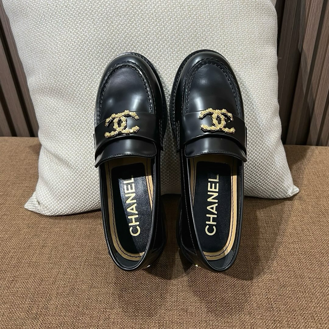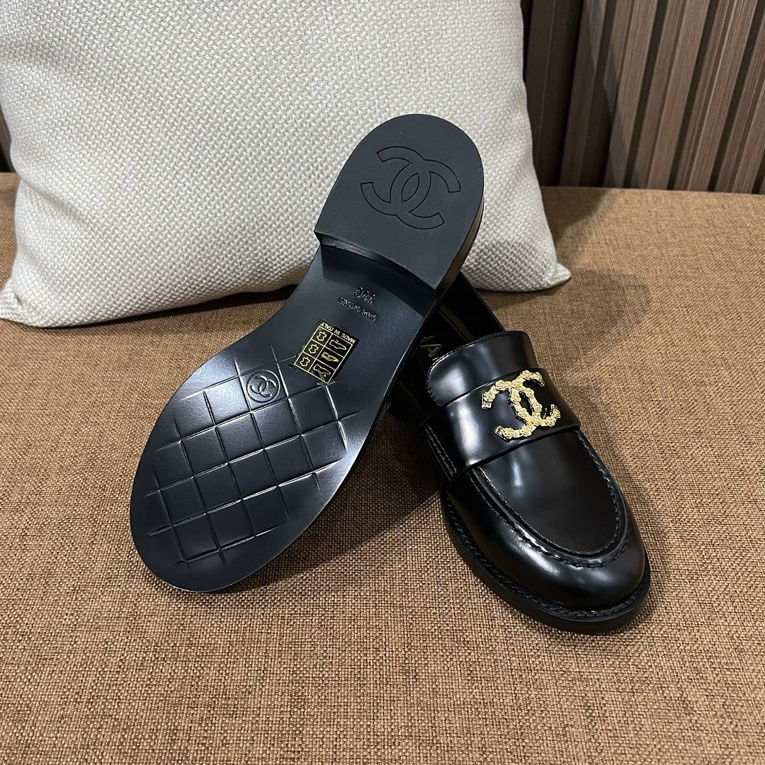 Chanel CC Loafers Black Calfskin with Metal Logo For Women
