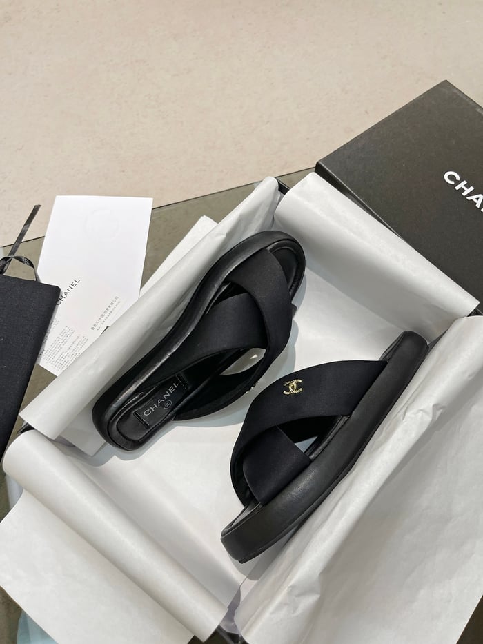 Chanel Cc Logo Criss Cross Slides Black