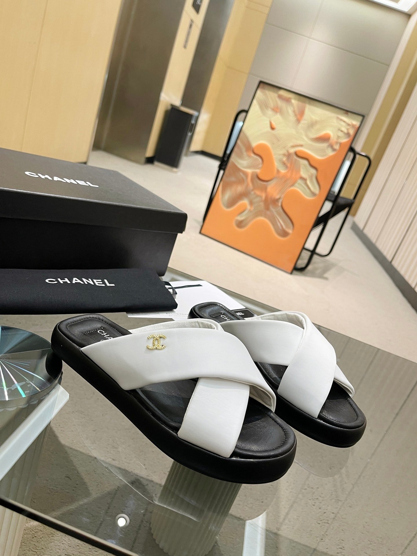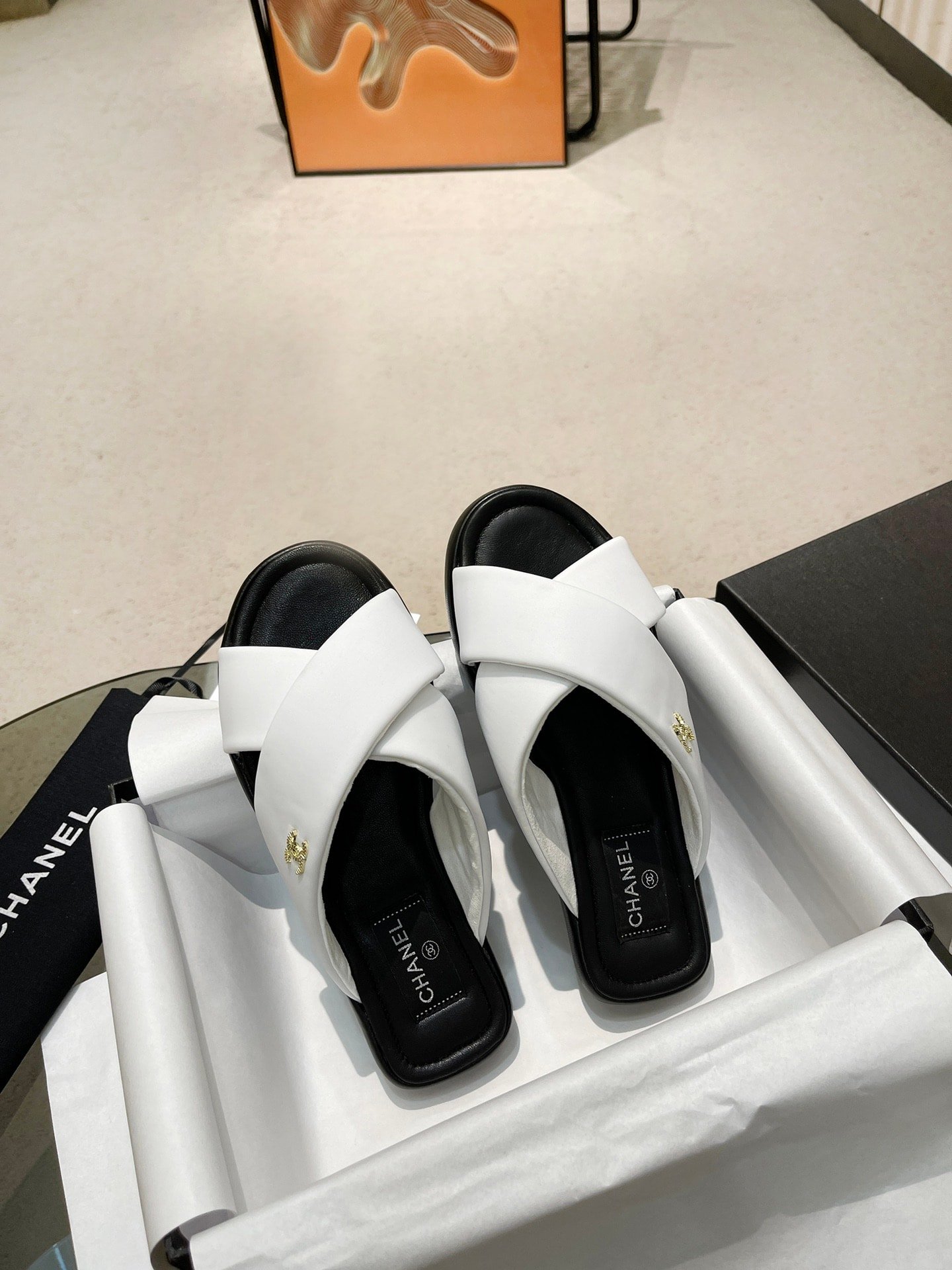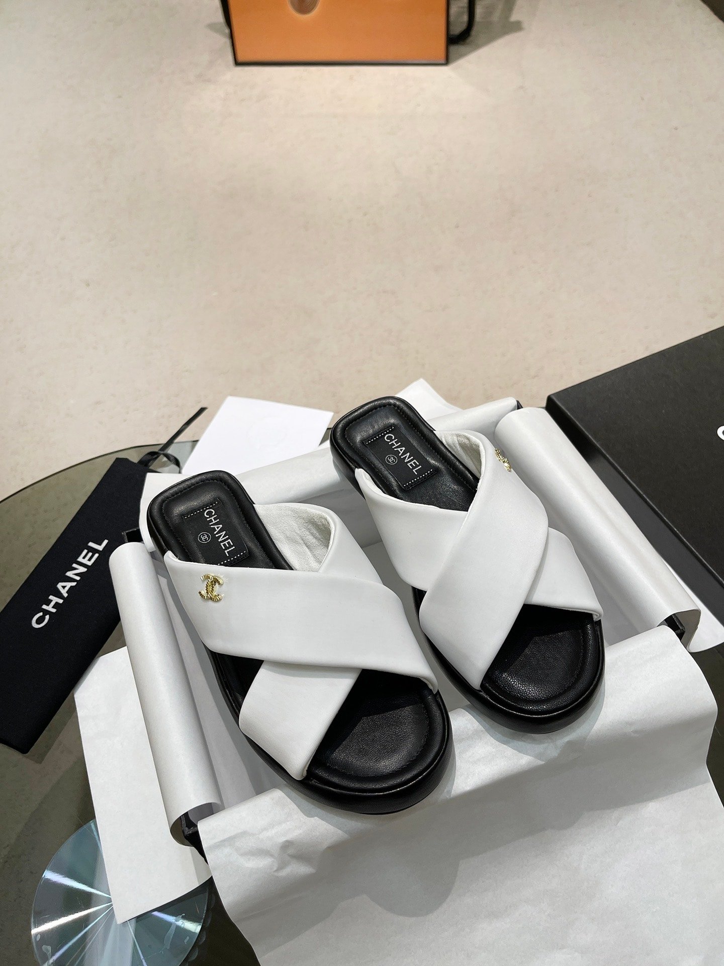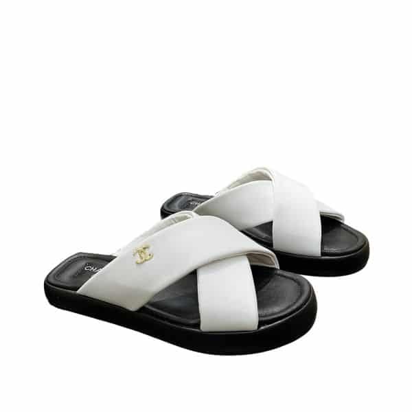 Chanel Cc Logo Criss Cross Slides White
