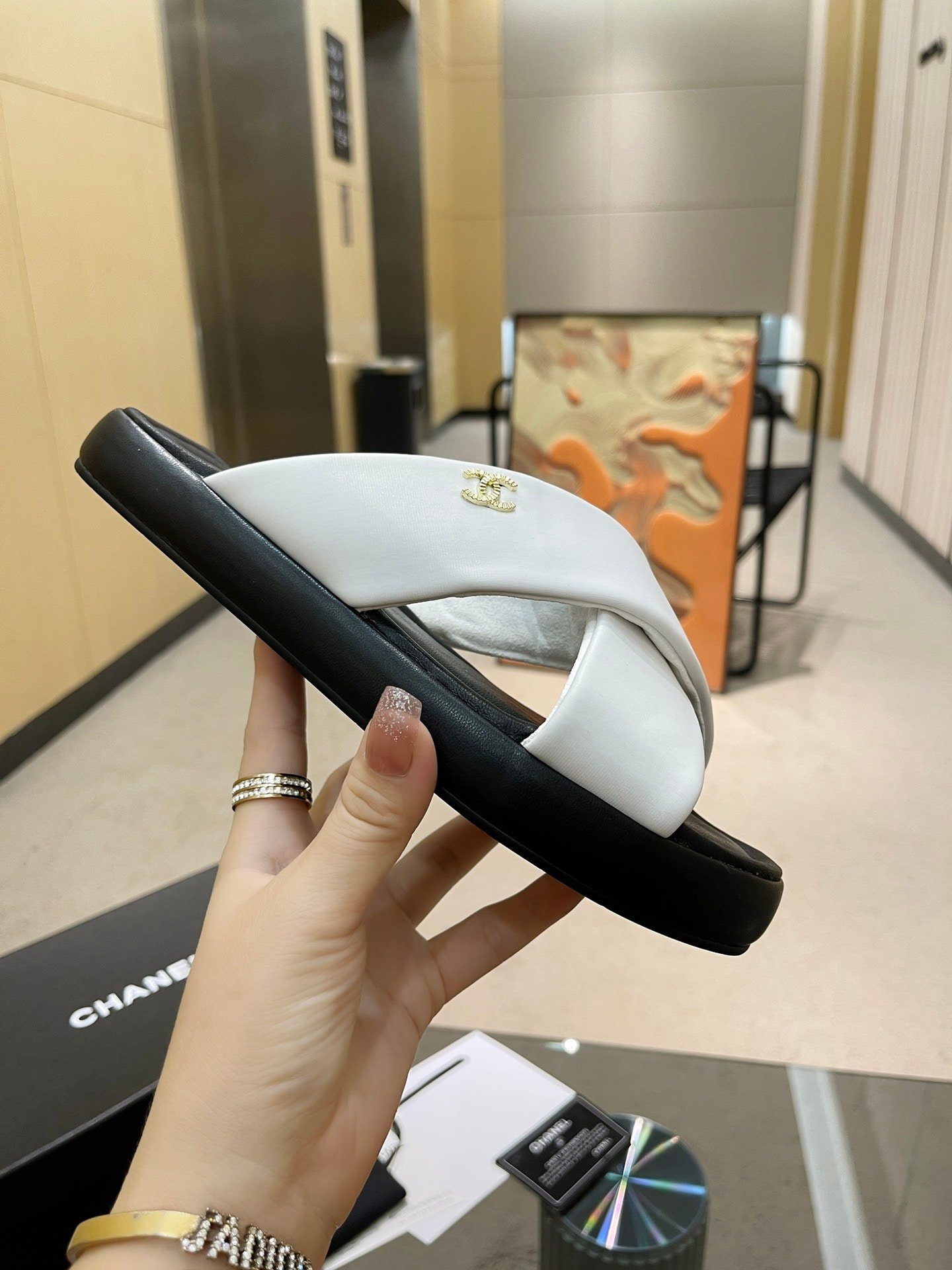 Chanel Black Slide Cc Logo