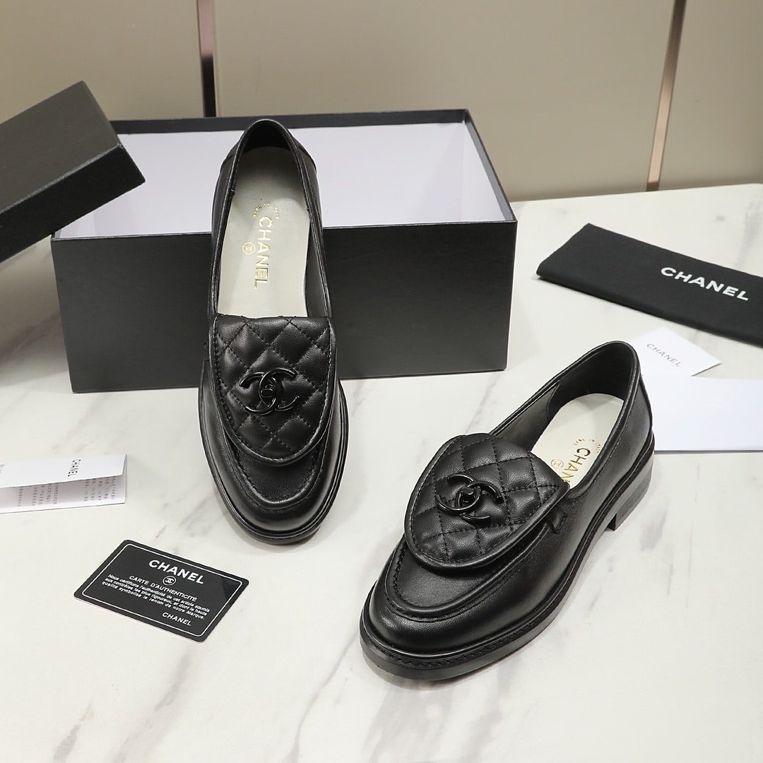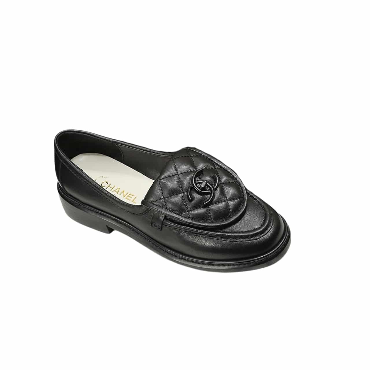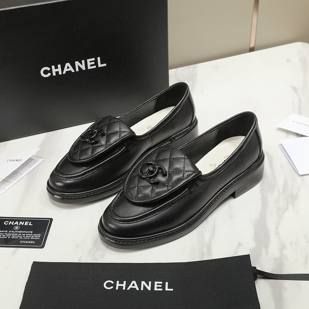 Chanel Cc Nib Turnlock Moccasins Flat Loafers Black