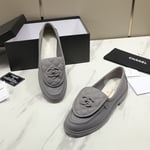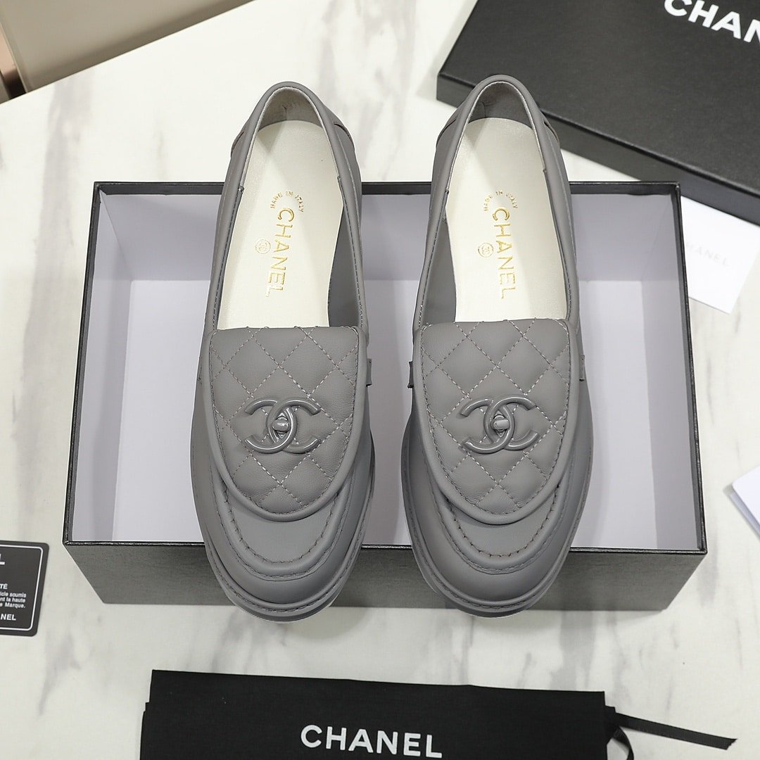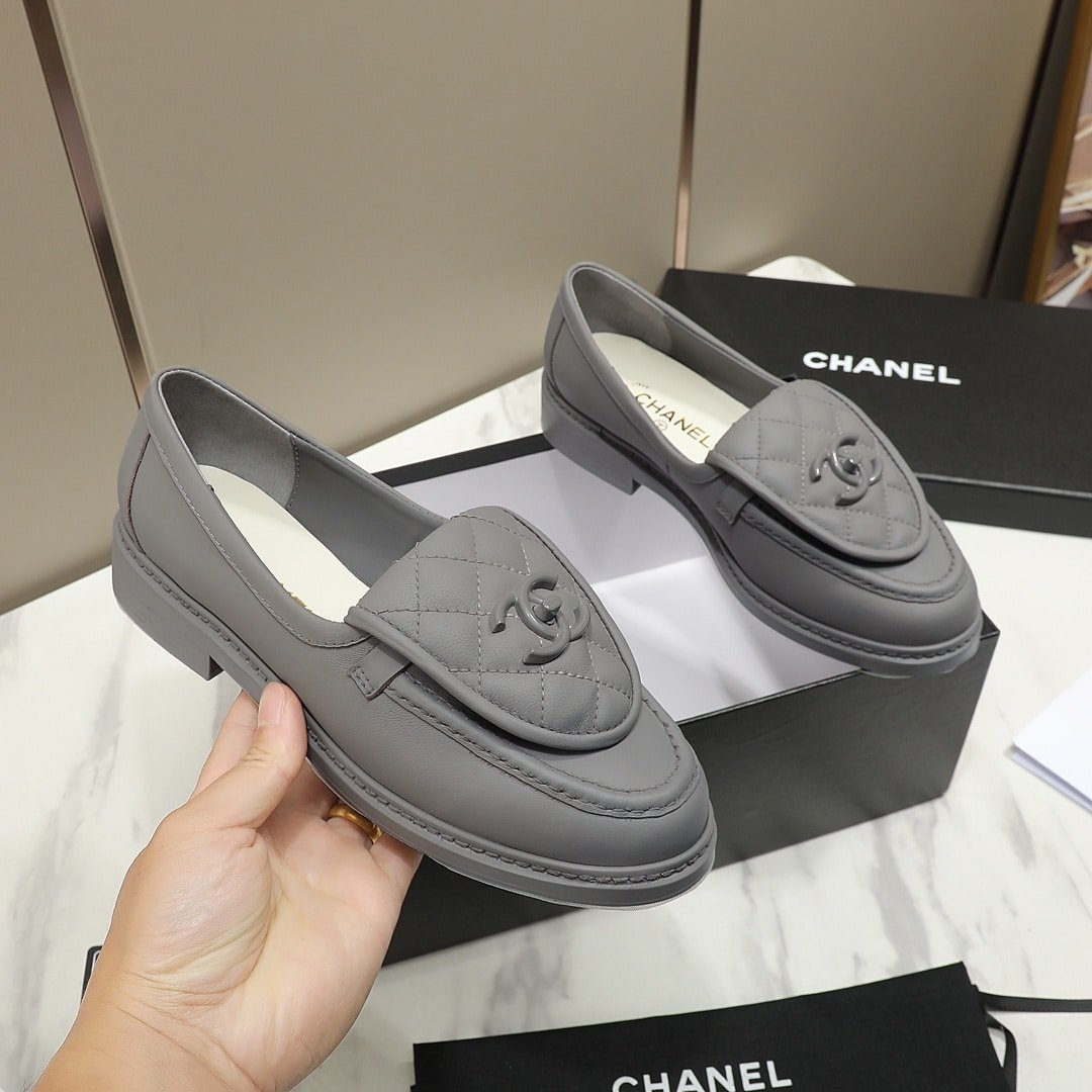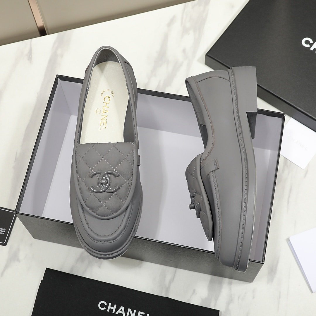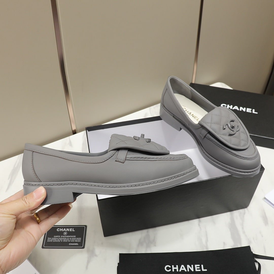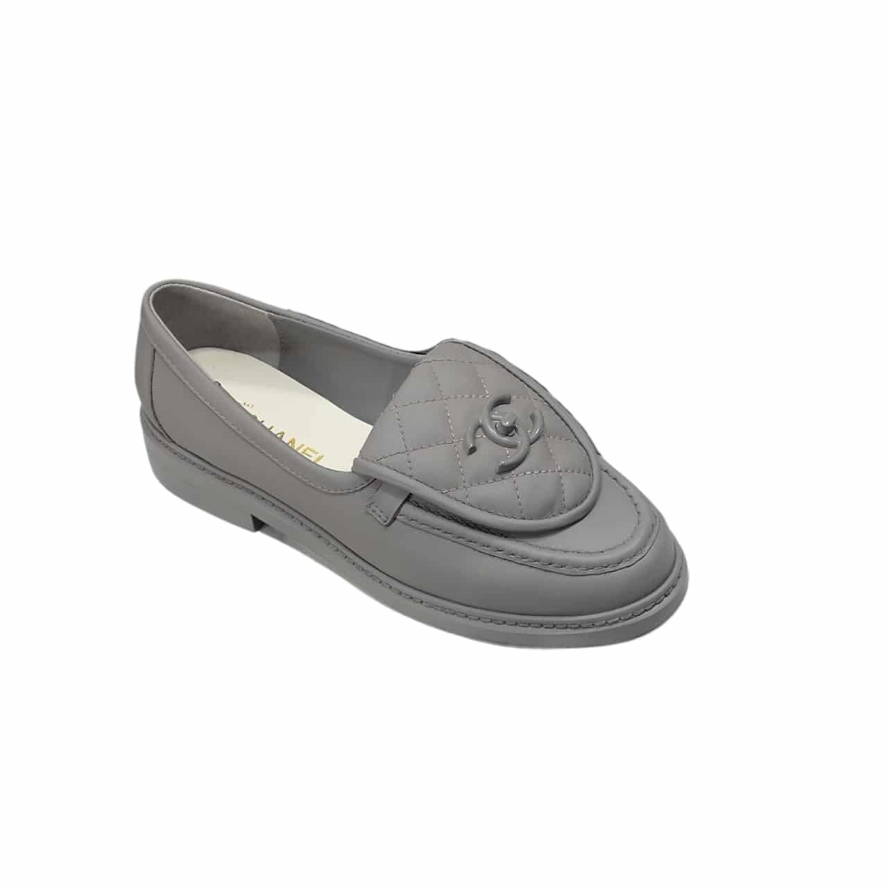 Chanel Cc Nib Turnlock Moccasins Flat Loafers Grey