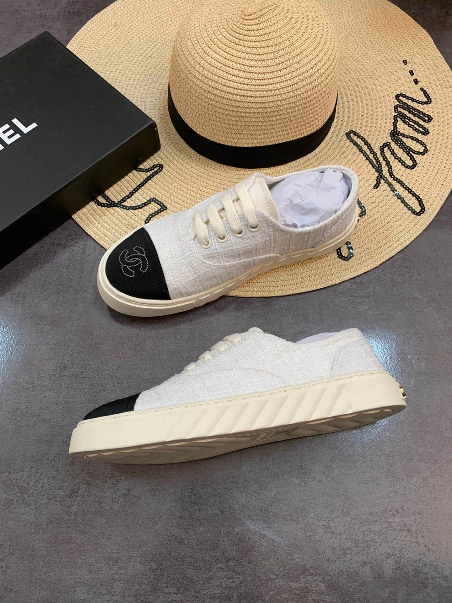 Chanel Velvet Sneakers Ivory And Black G35617