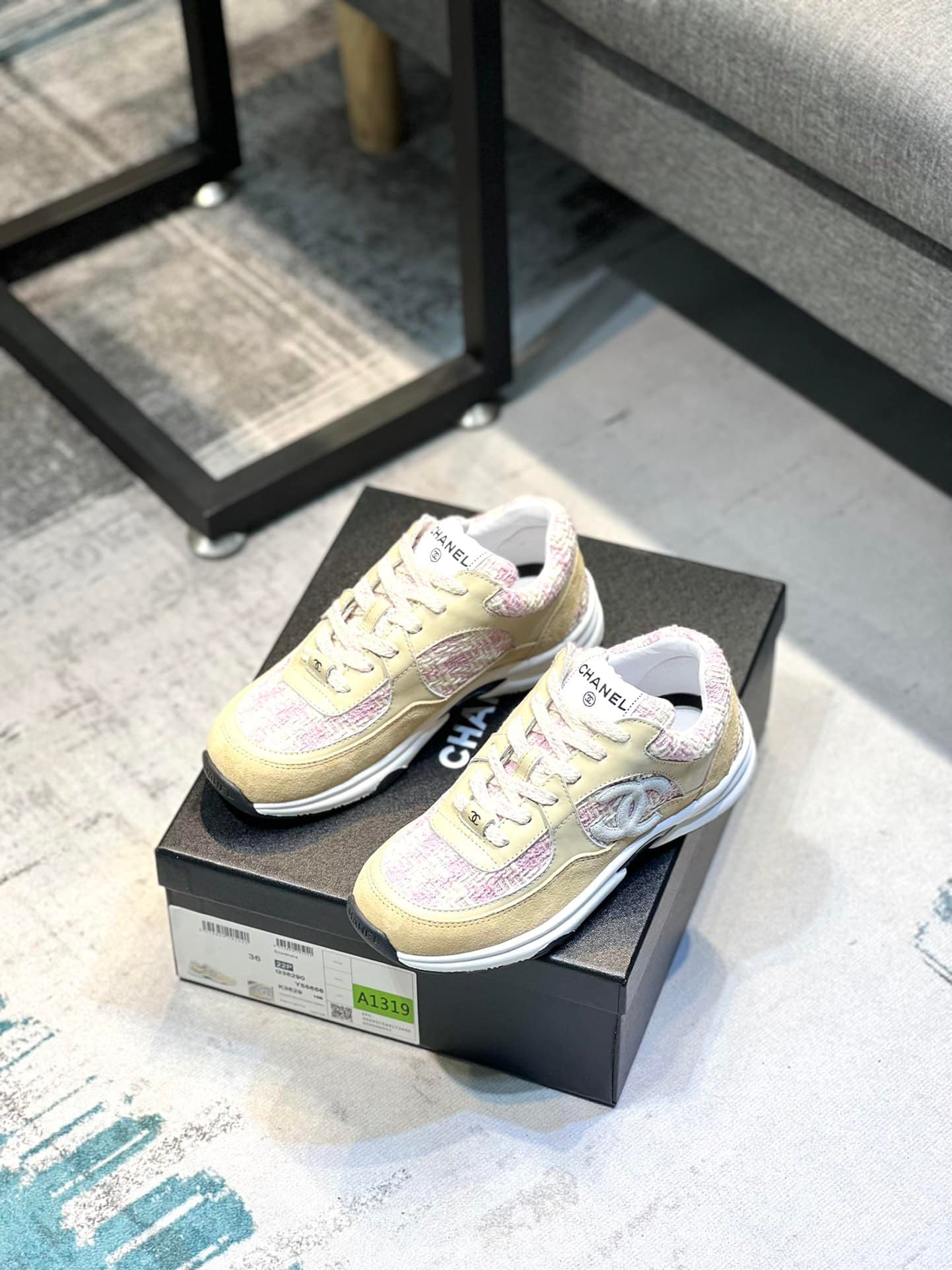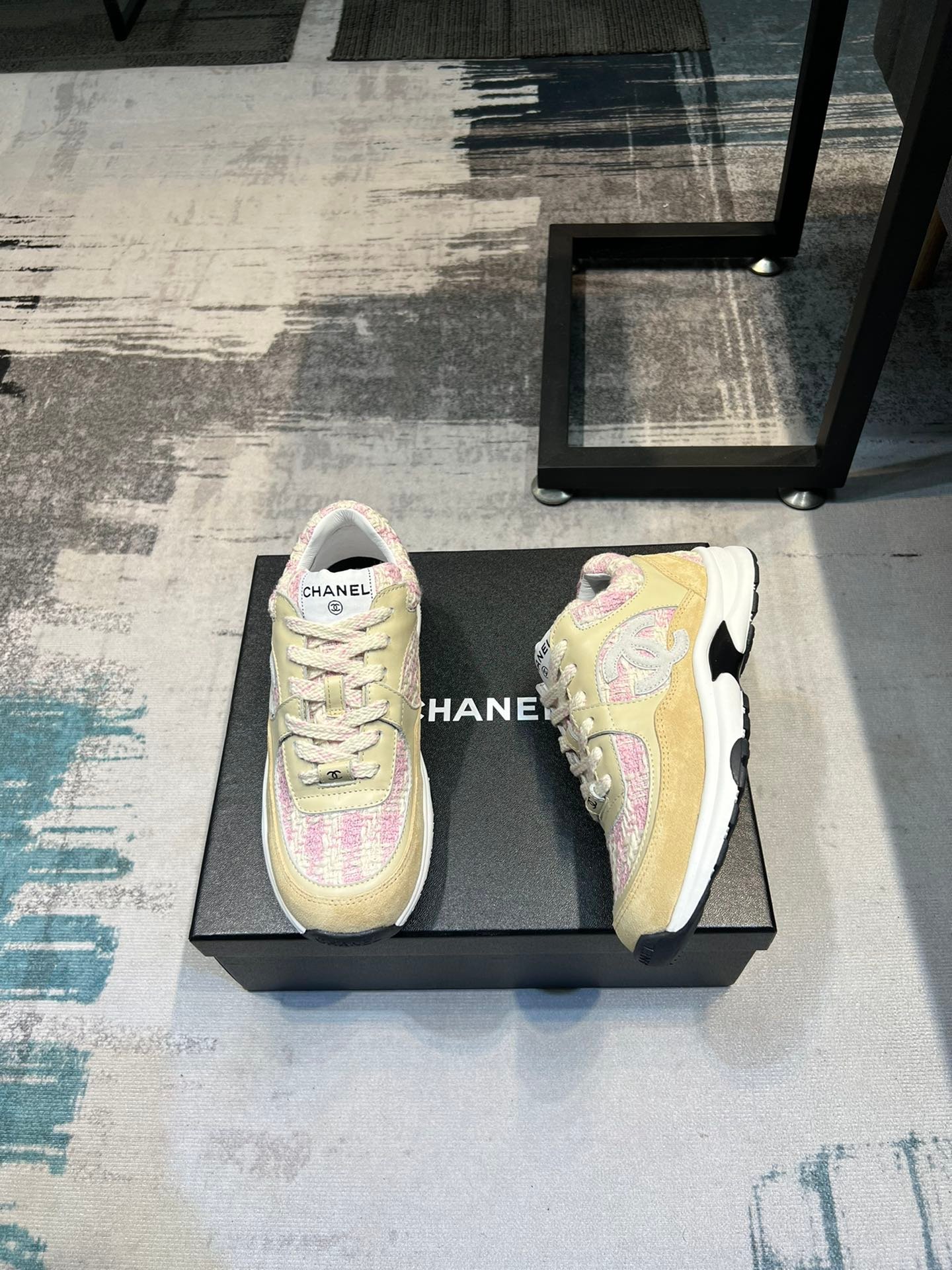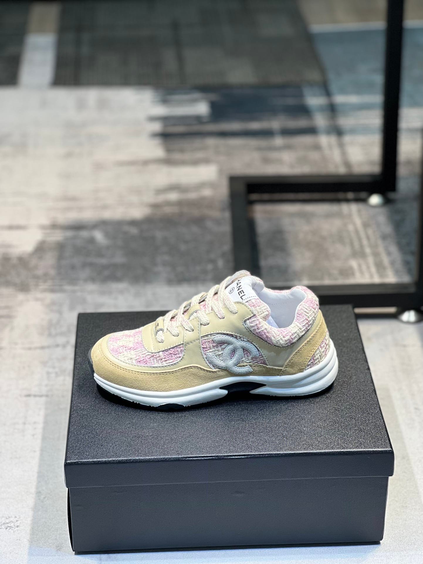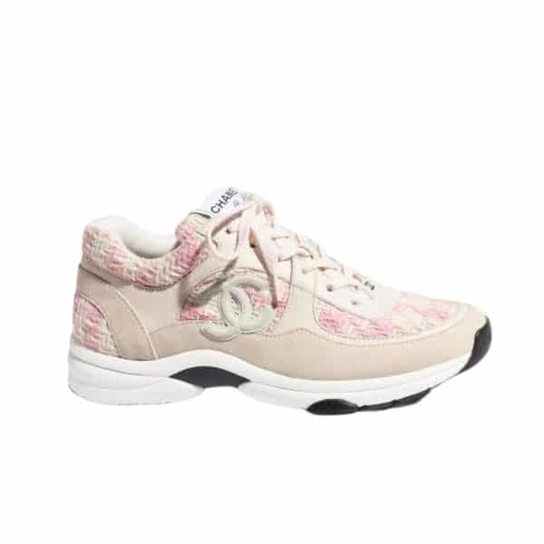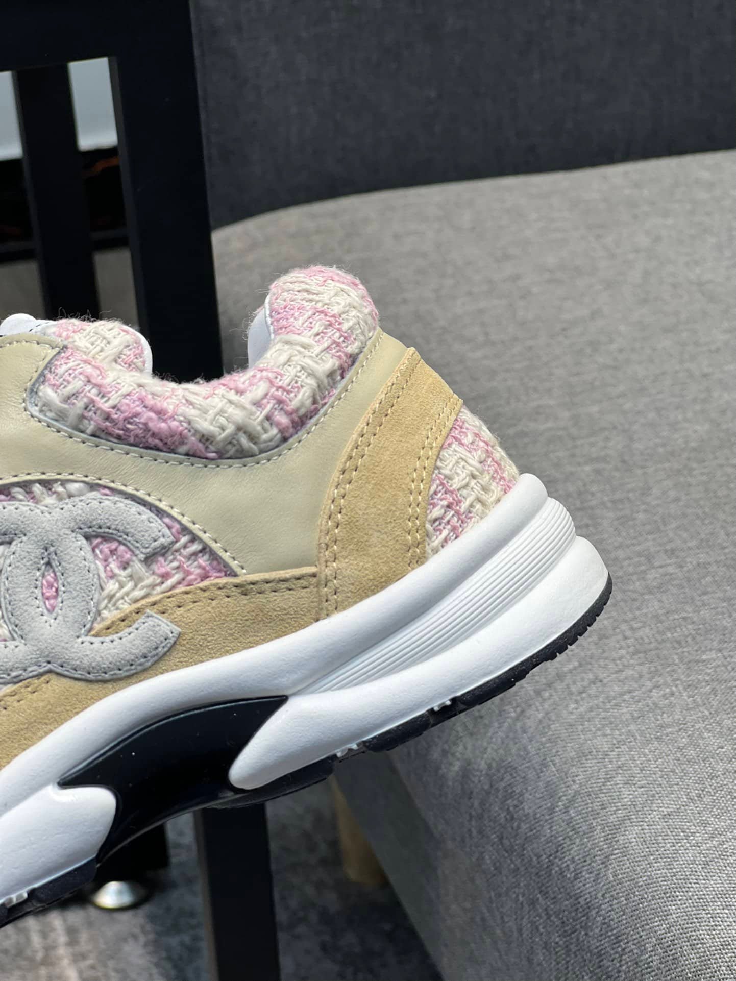 Chanel Coton Tweed Suede Calfskin Sneakers Pink G38299 Y56627 K6020