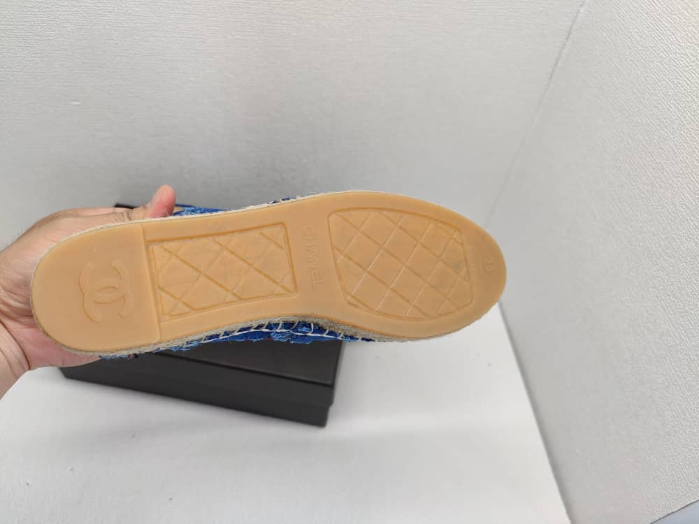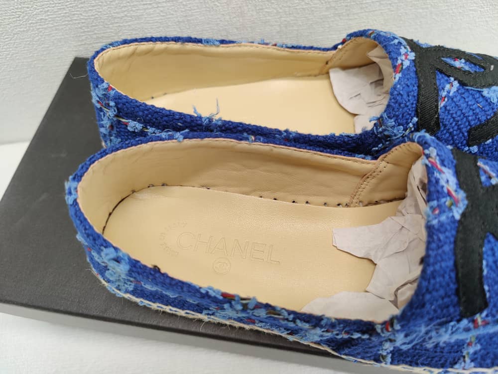 Chanel Espadrilles Cotton Tweed And Grosgrain Blue G29762 Y56424 K5509