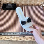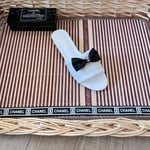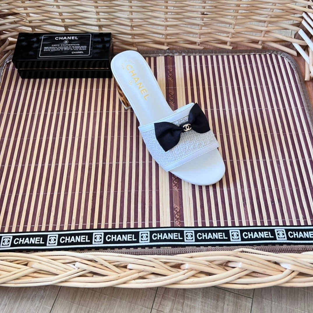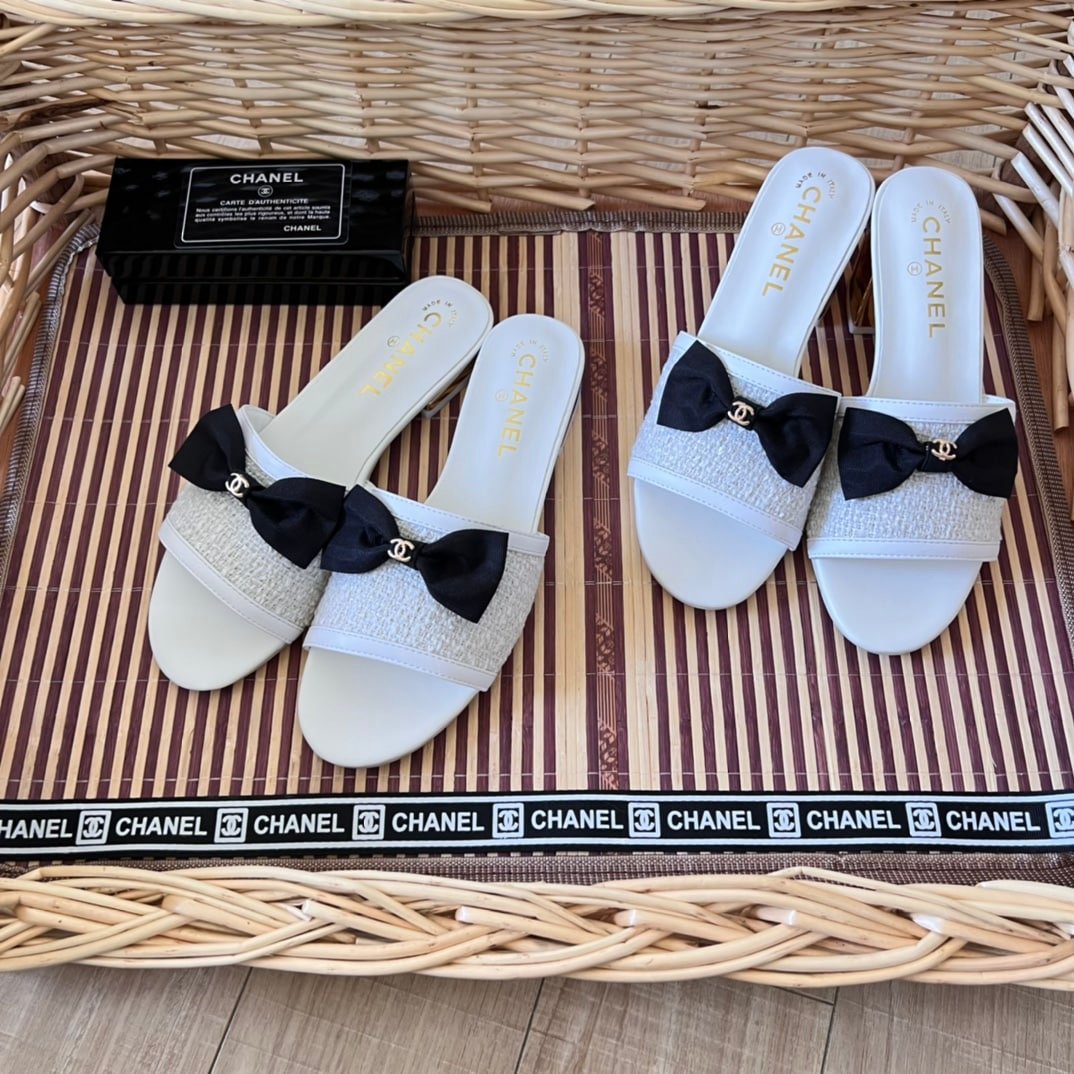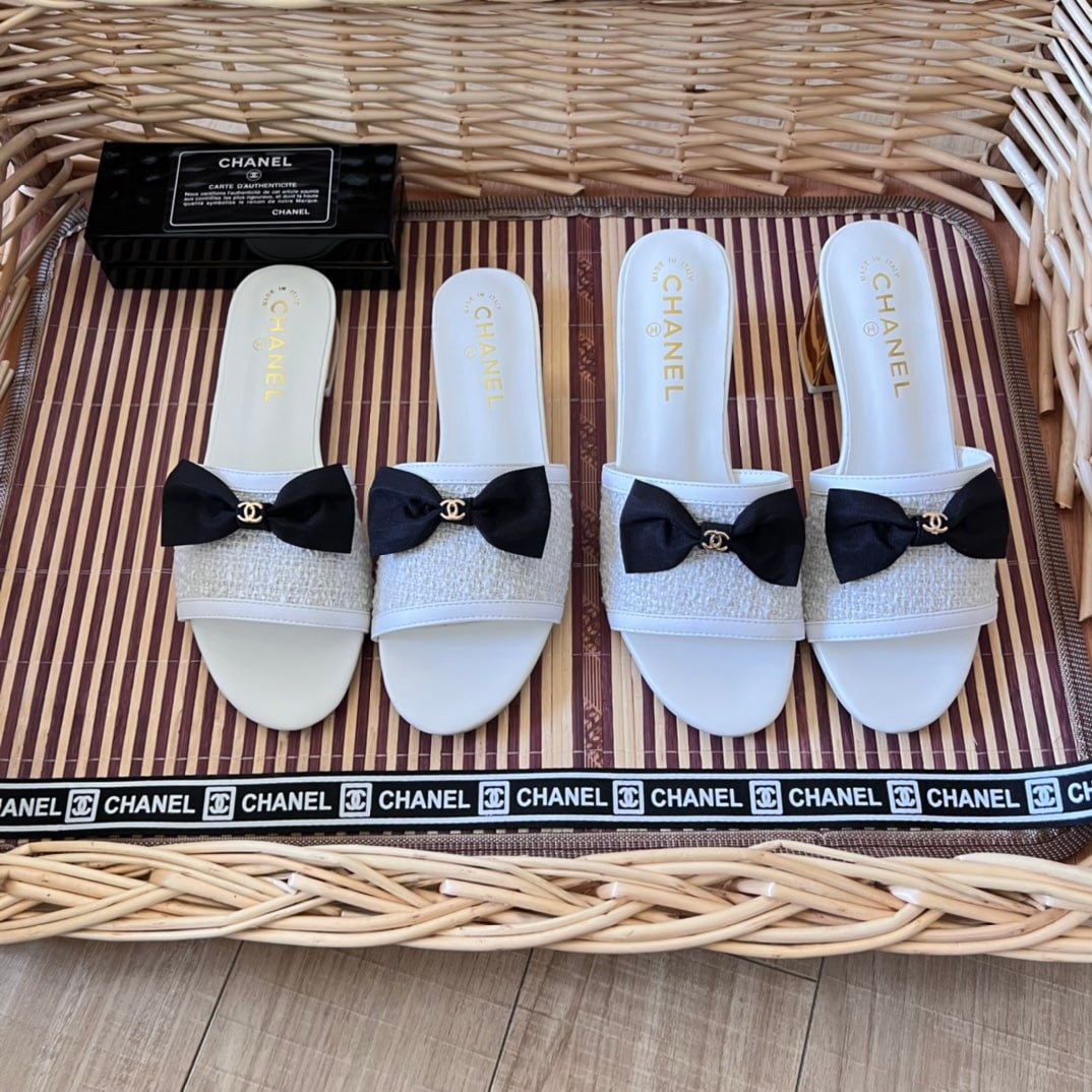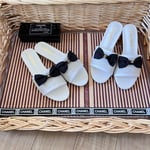 Chanel Grosgrain Ribbon Bow Flat Sandal Tweed White