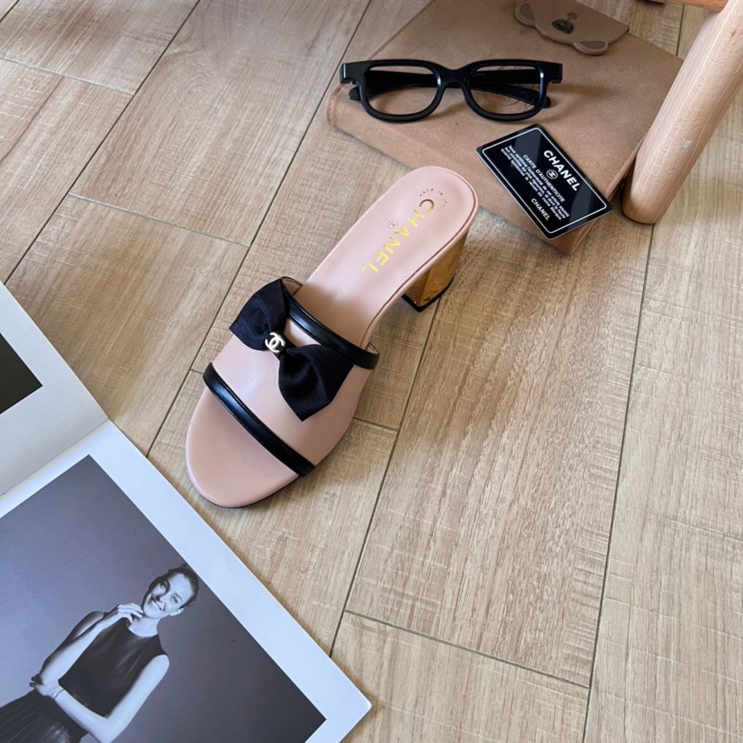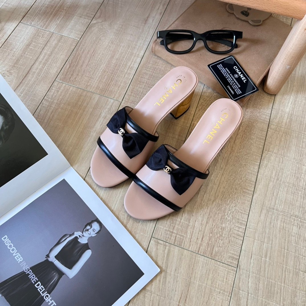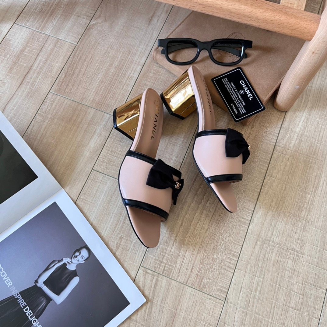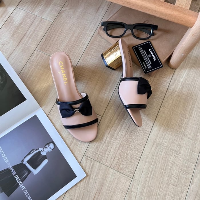 Chanel Grosgrain Ribbon Bow Mule Leather Pink