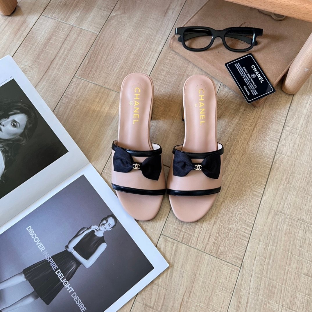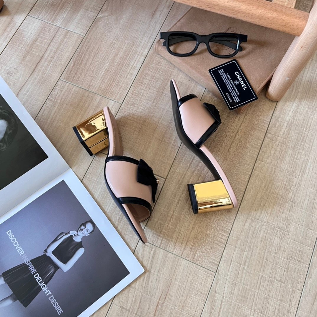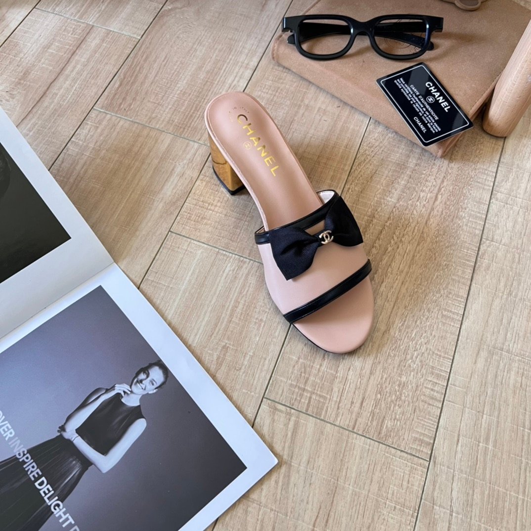 Chanel Grosgrain Ribbon Bow Mule Leather Pink