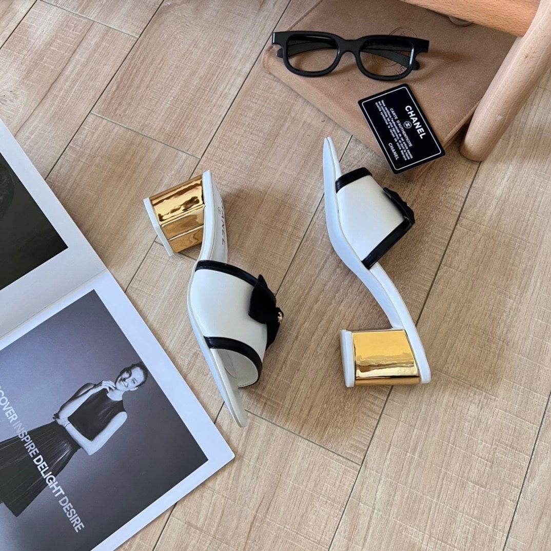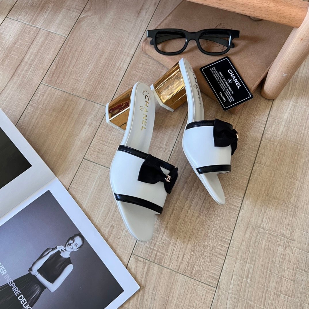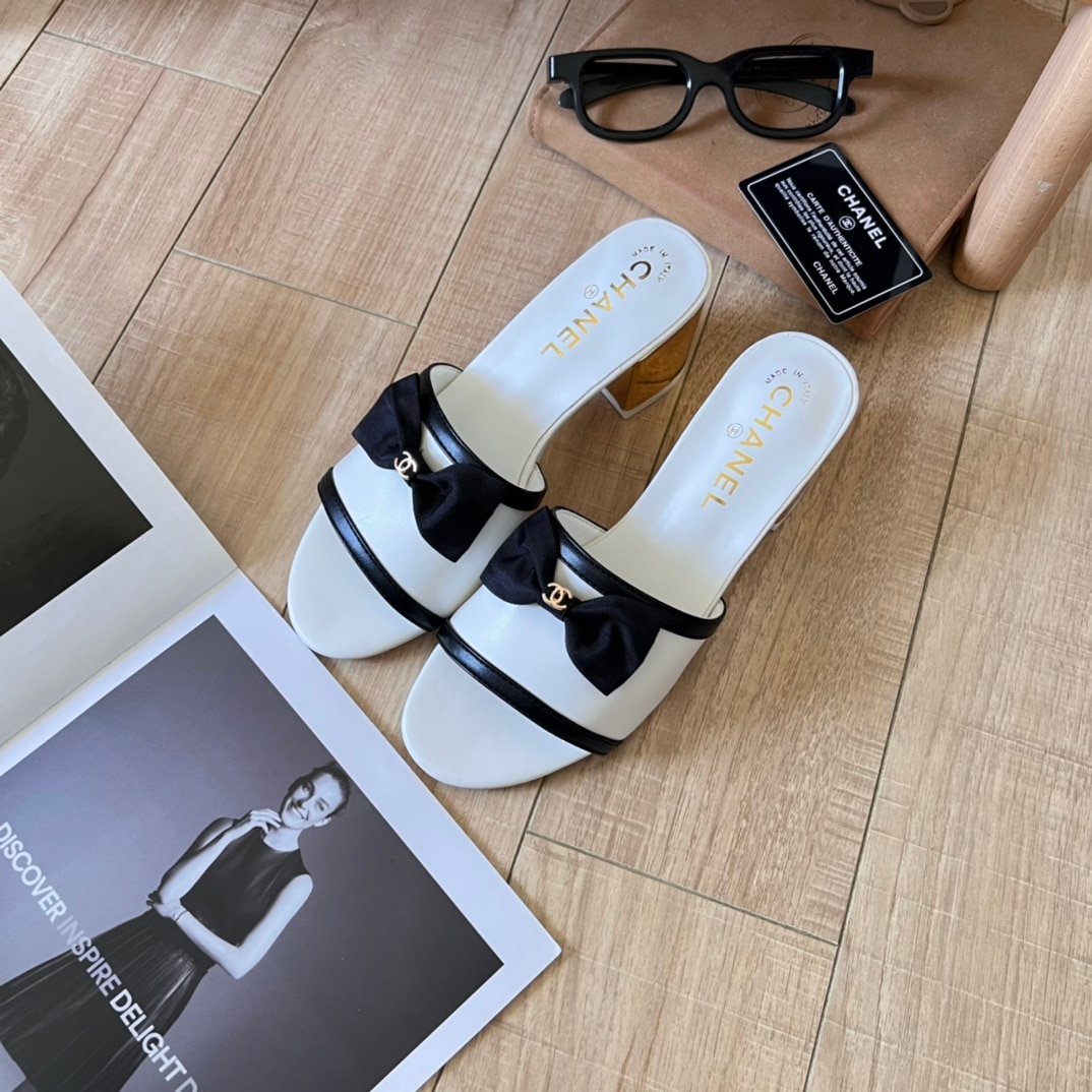 Chanel Grosgrain Ribbon Bow Mule Leather White