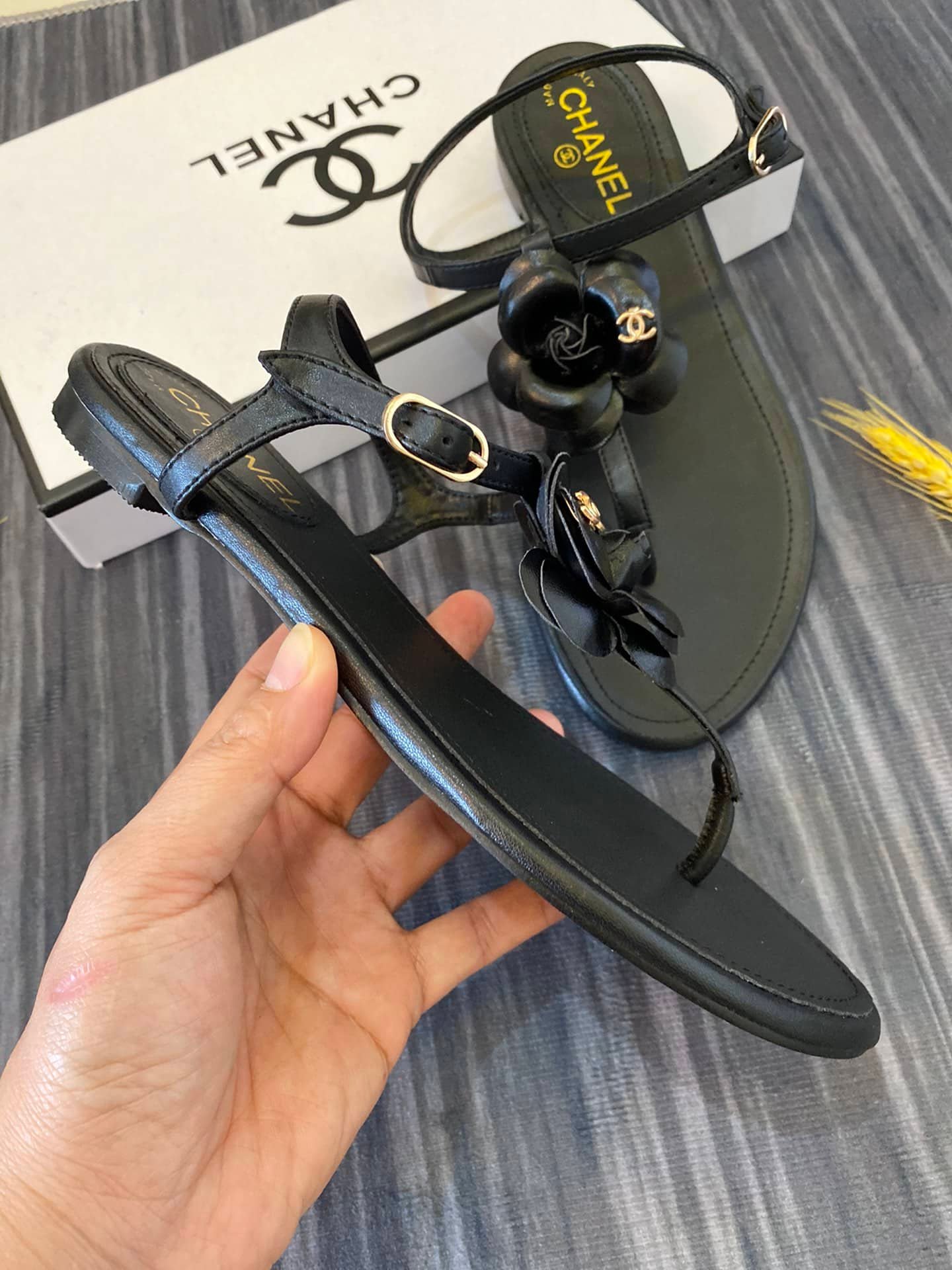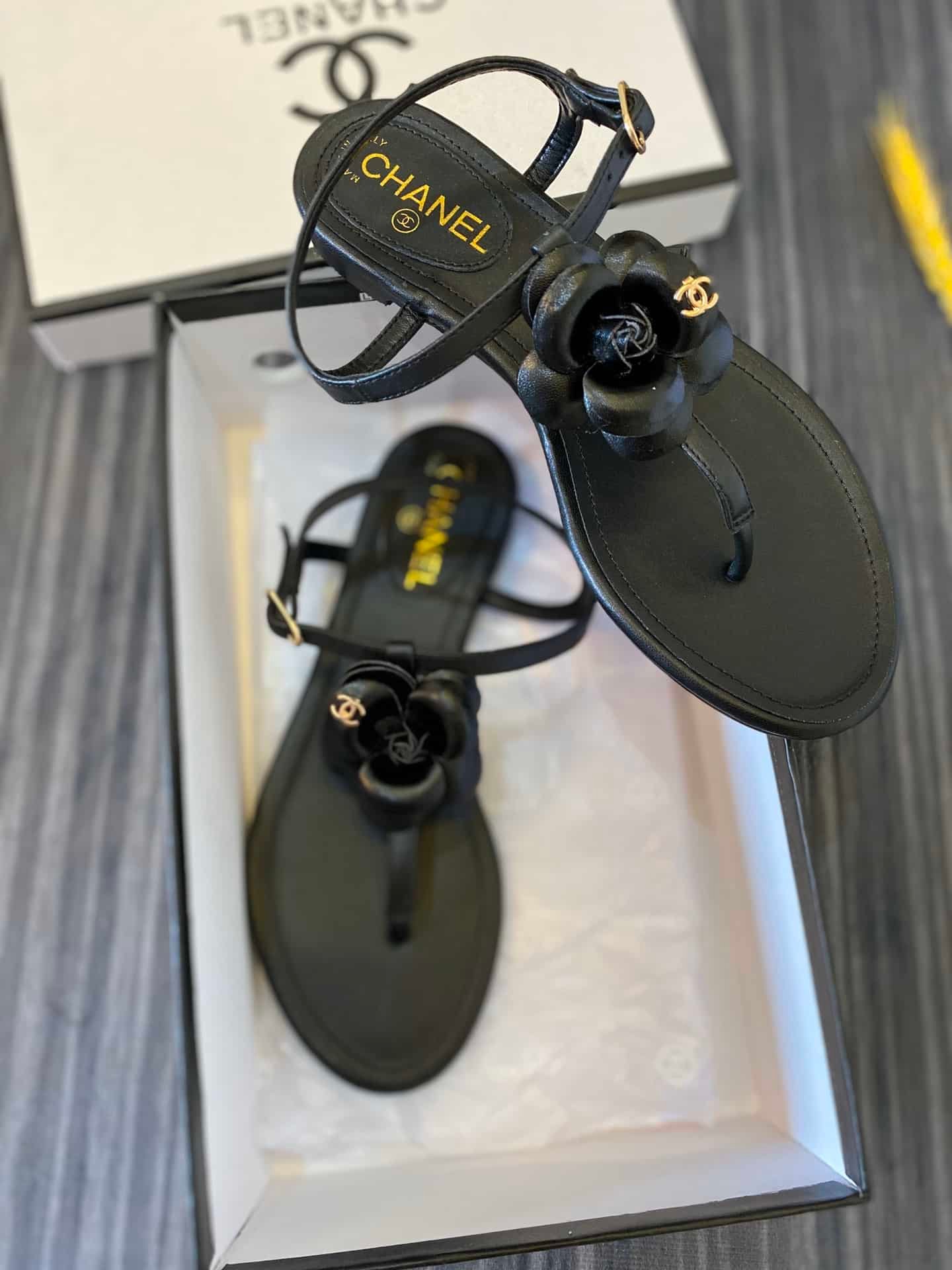 Chanel Shiny Pearl Crystal Cc Heart Thong Sandals Black G39674 X01000 94305