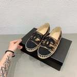 Chanel Metallic Tweed Grosgrain Cc Espadrilles Slip On Gold Black