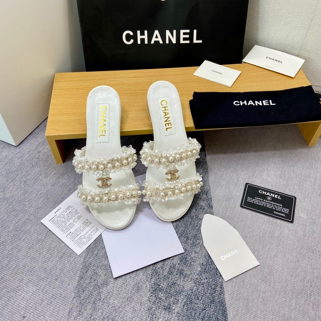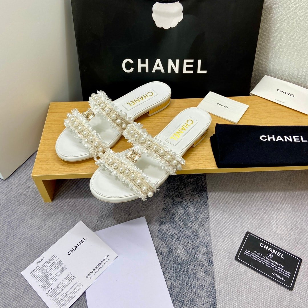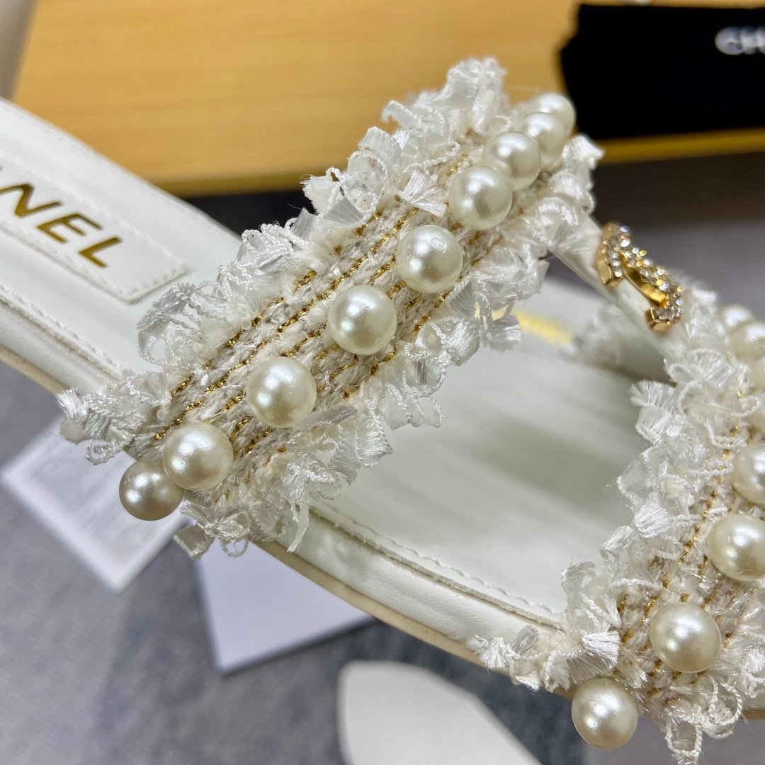 Chanel Mule Slippers Pearl Tweed White