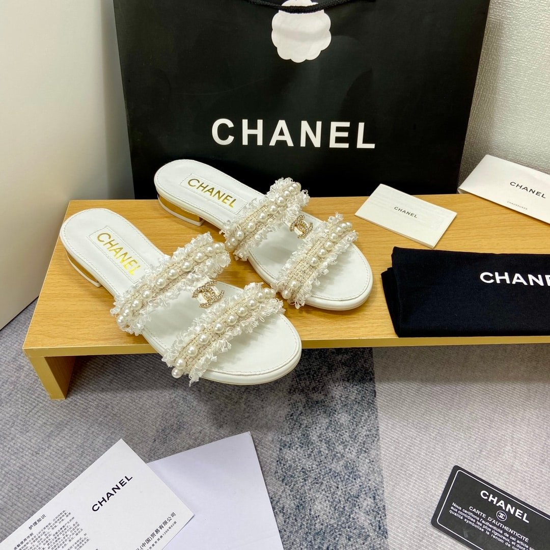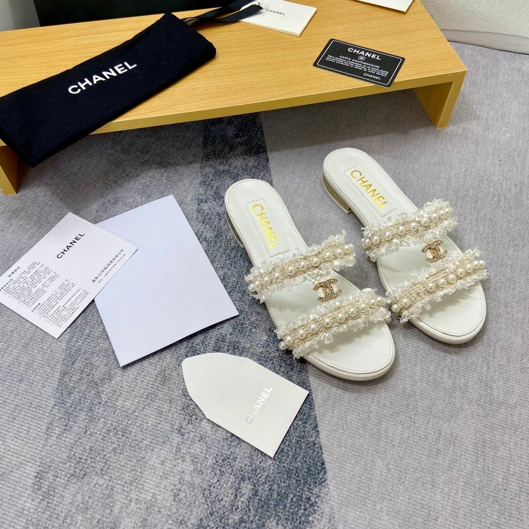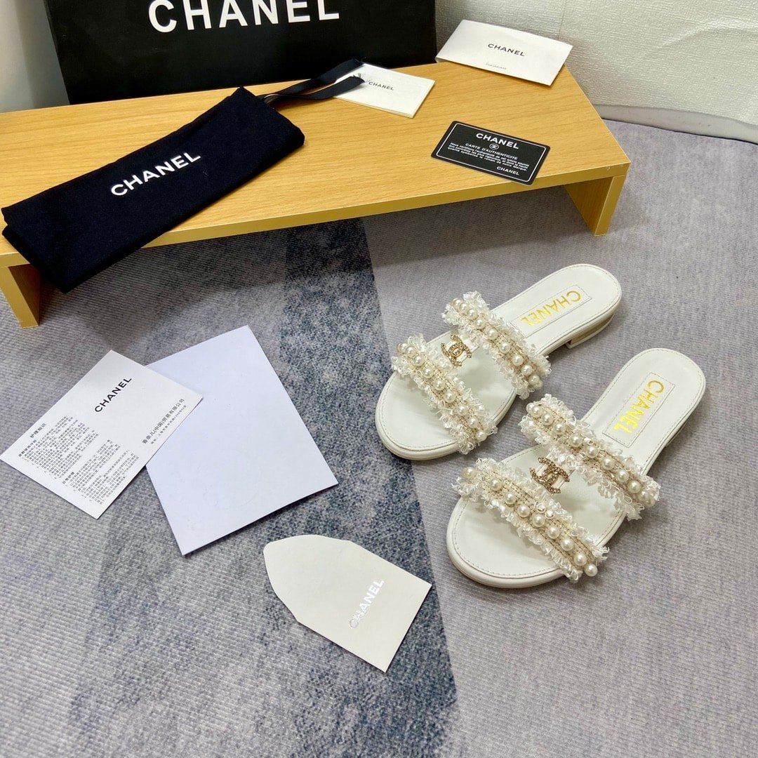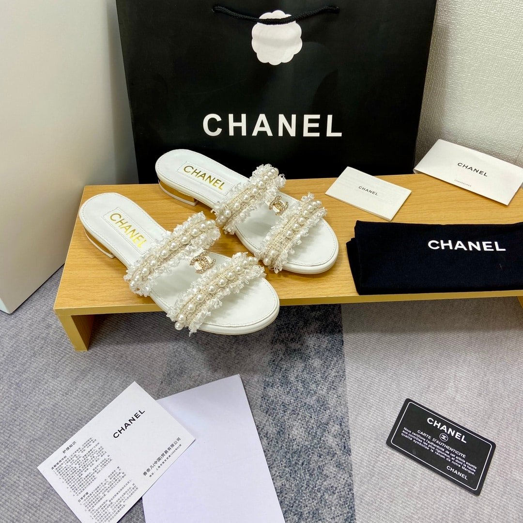 Chanel Mule Slippers Pearl Tweed White