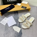Chanel Shiny Pearl Crystal Cc Heart Thong Sandals White G39674 X01000 0S082