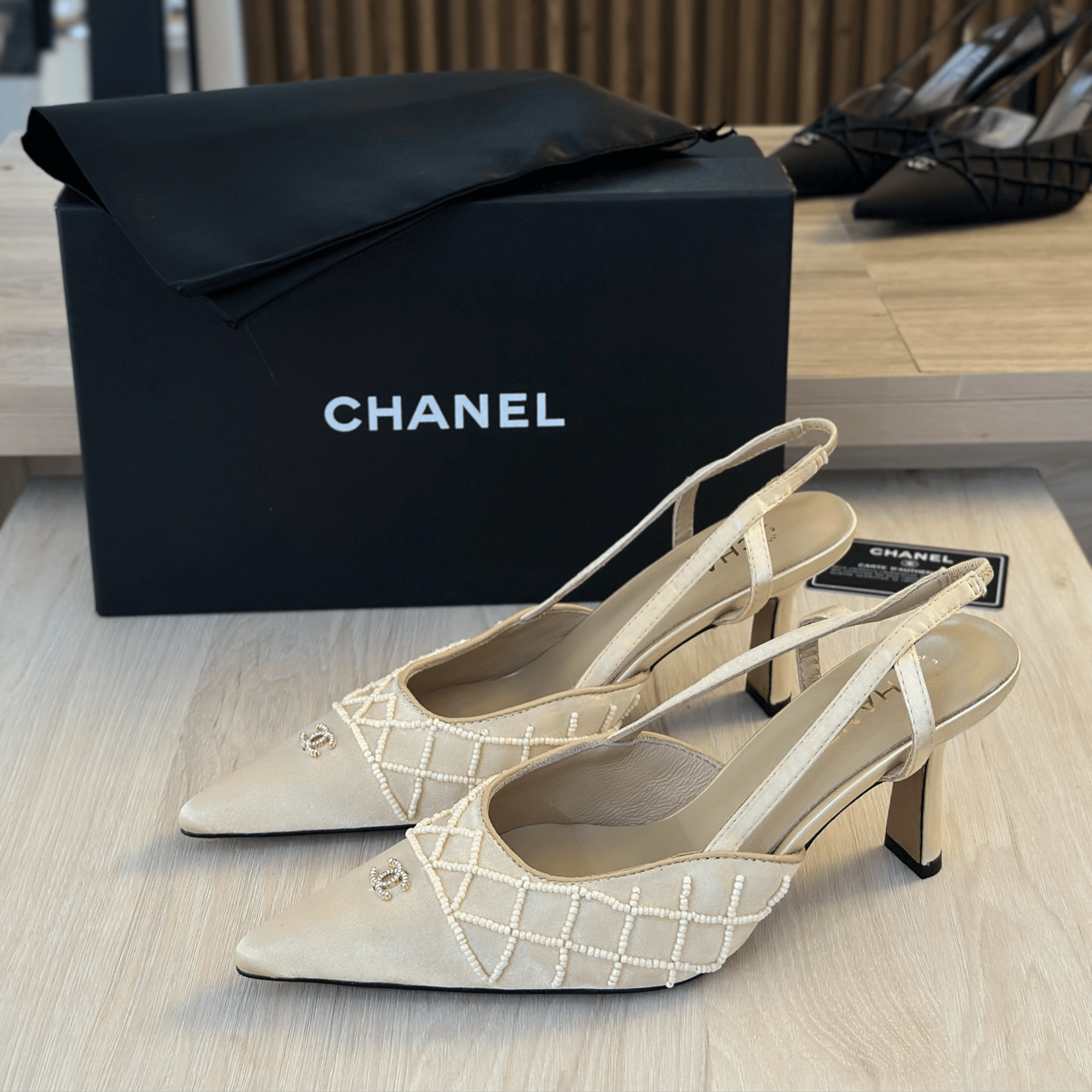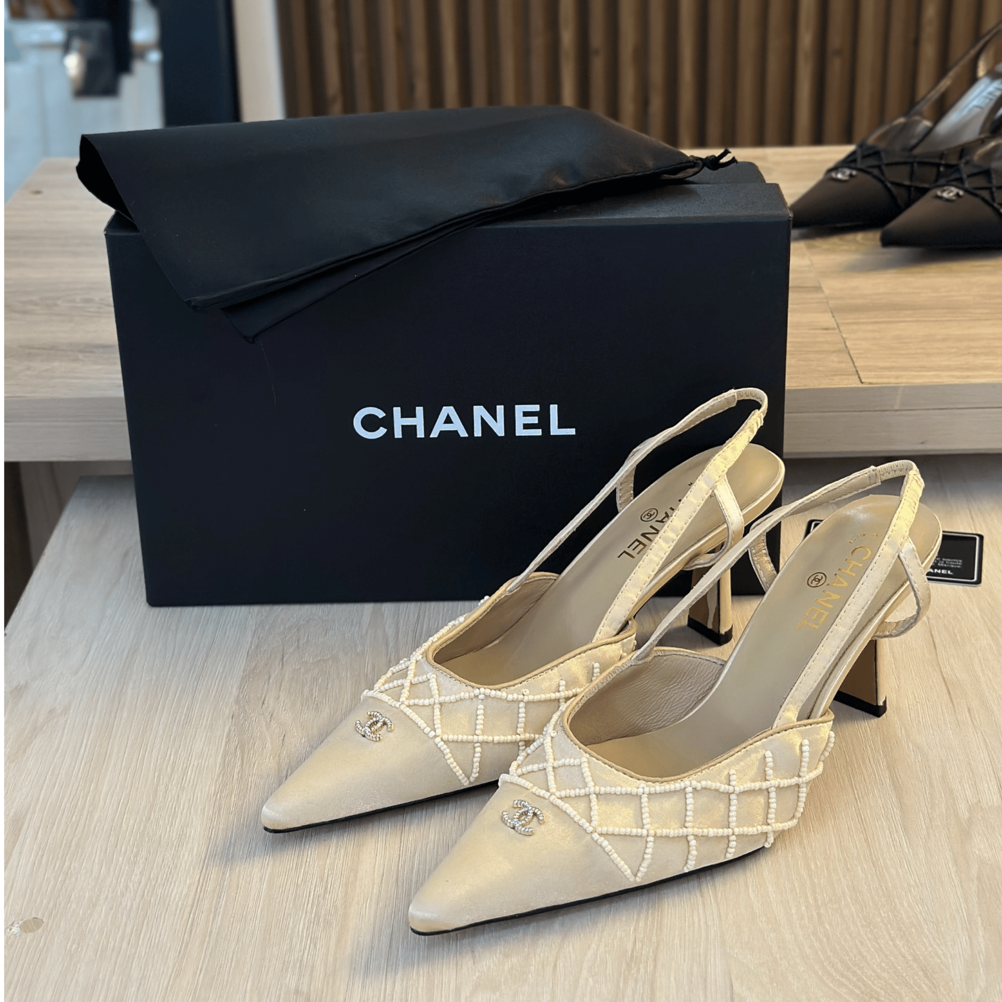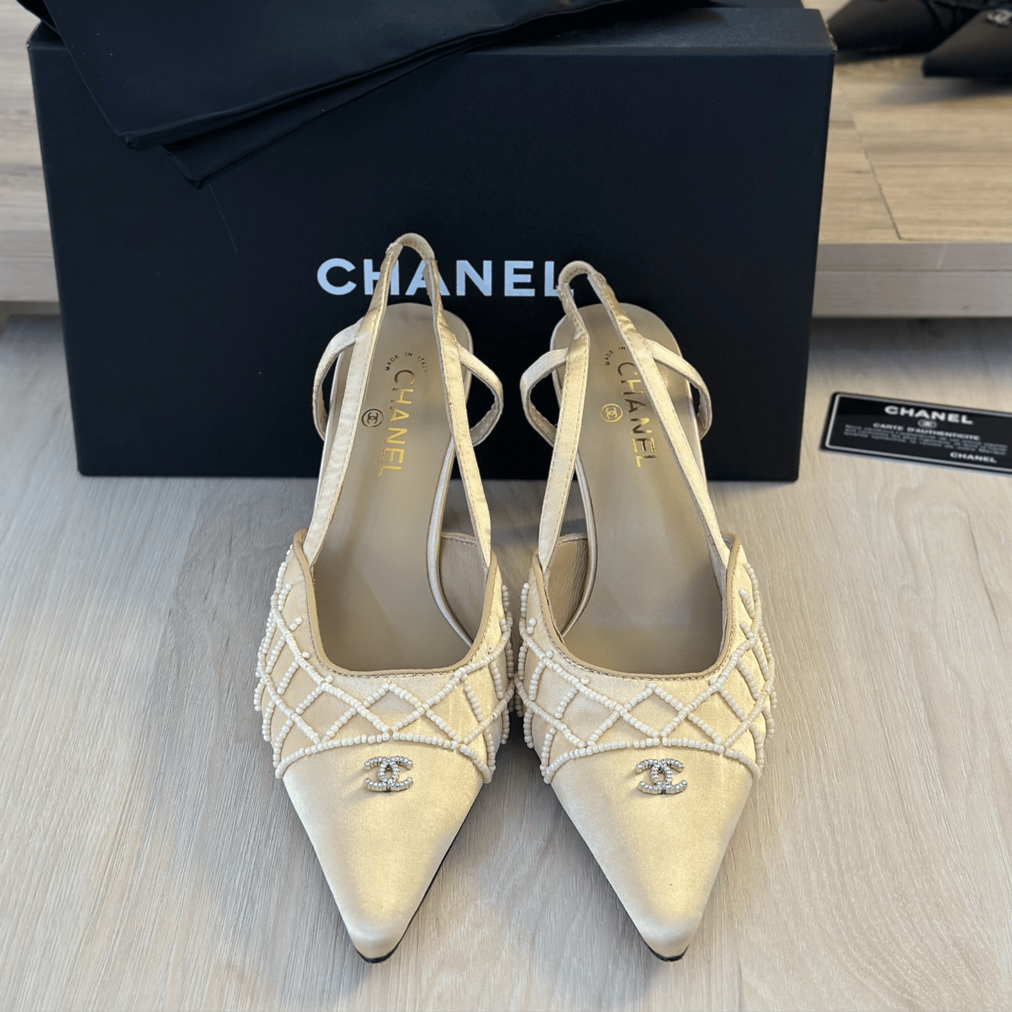 Chanel Pearl Lattice Slingback Heels
