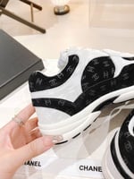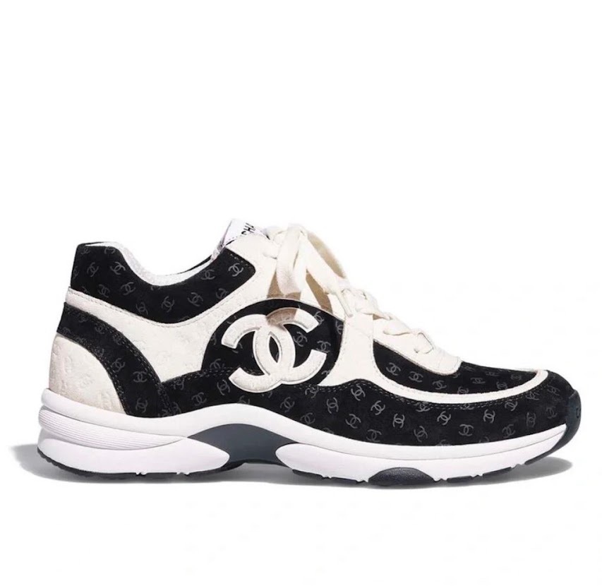 Chanel Printed Suede Calfskin Sneakers White And Black G39230 X56653 94305