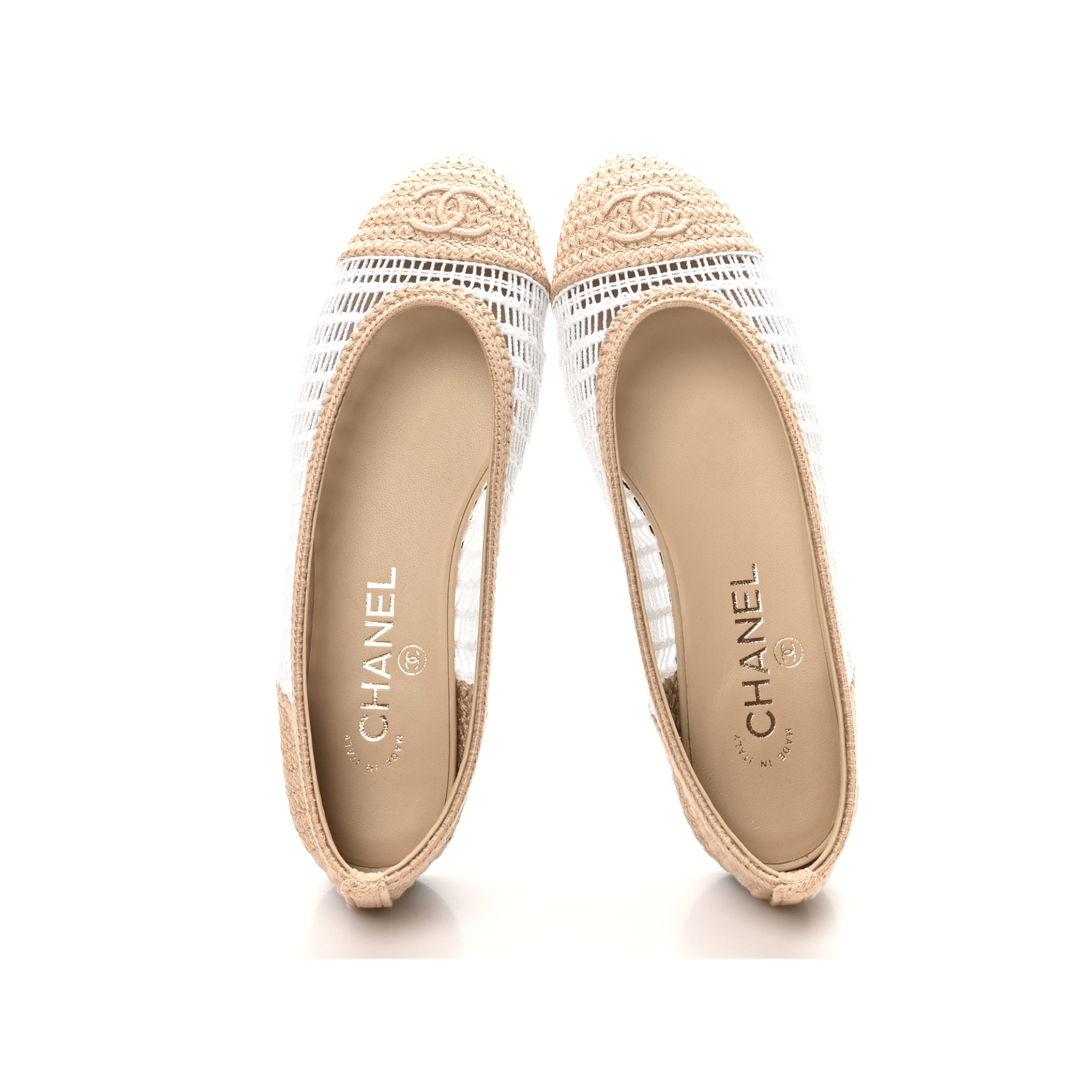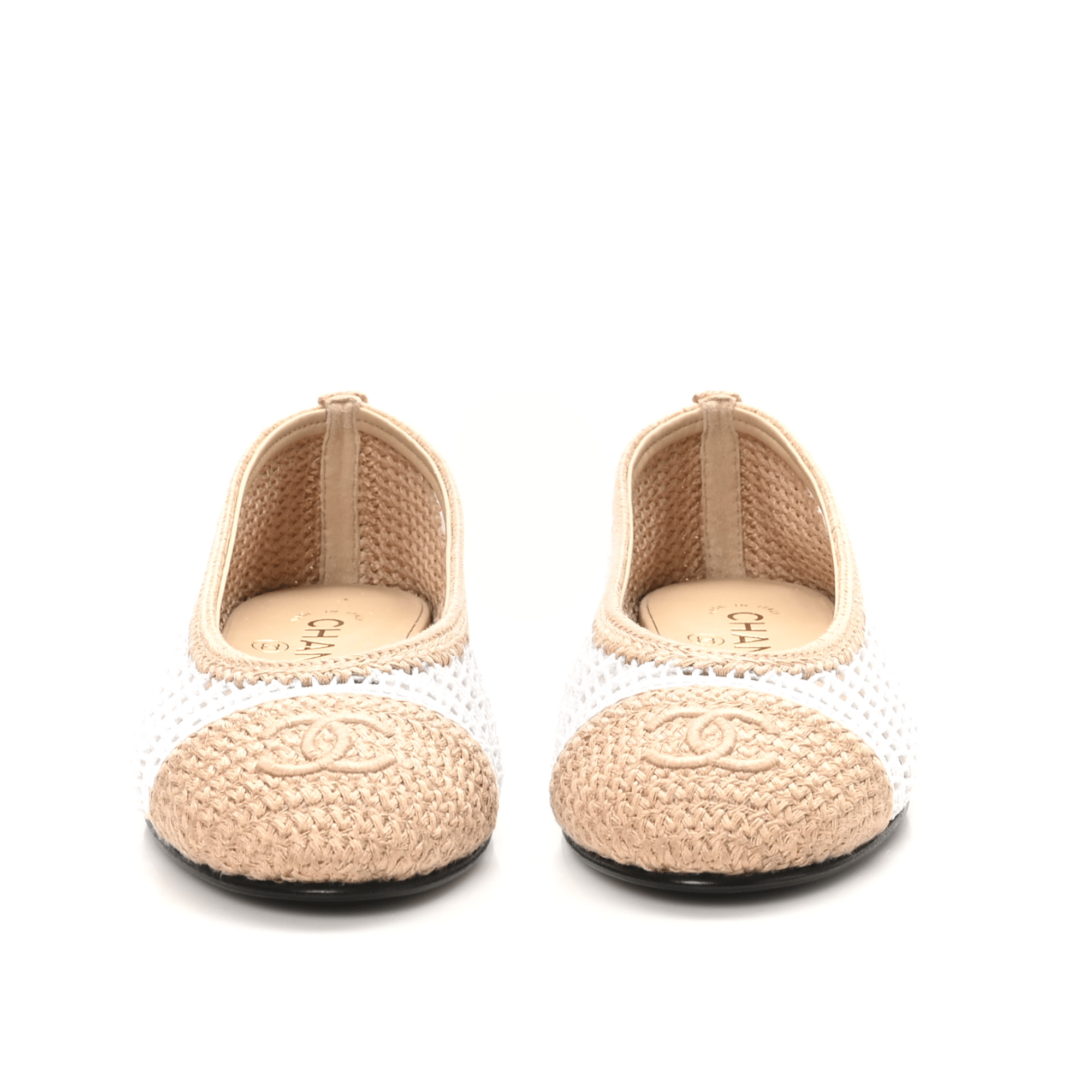 Chanel Raffia & Leather Two-Tone Beige/White Ballet Flats G45056