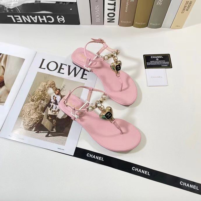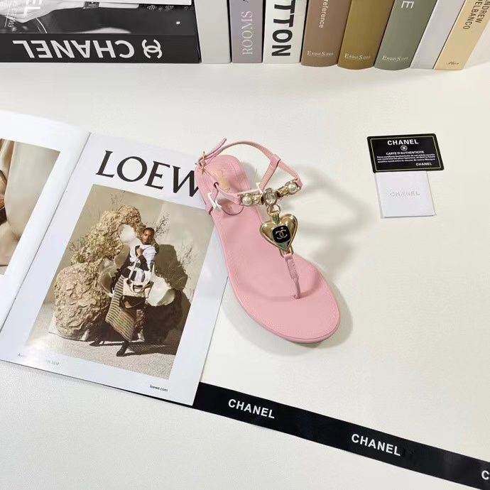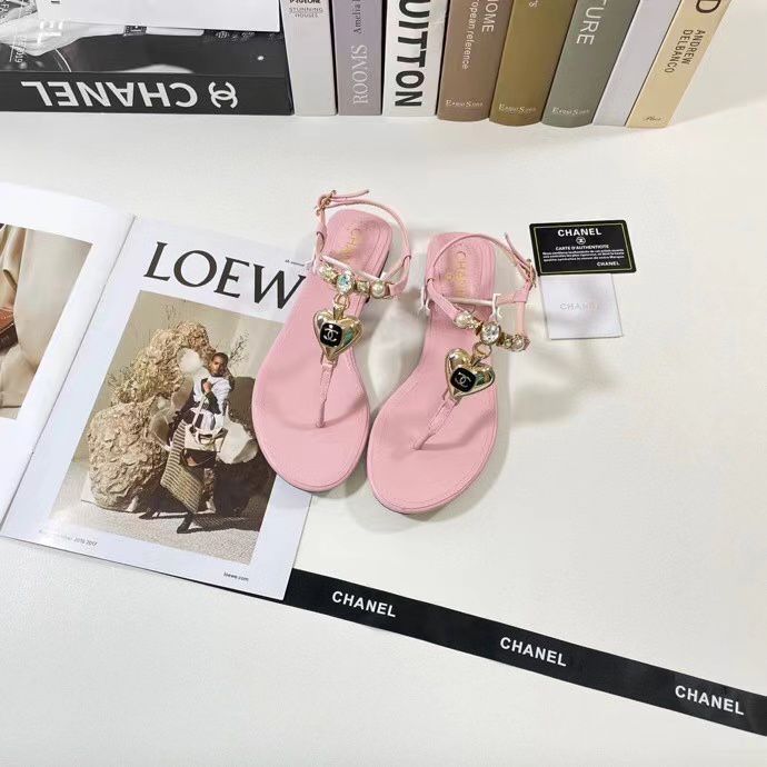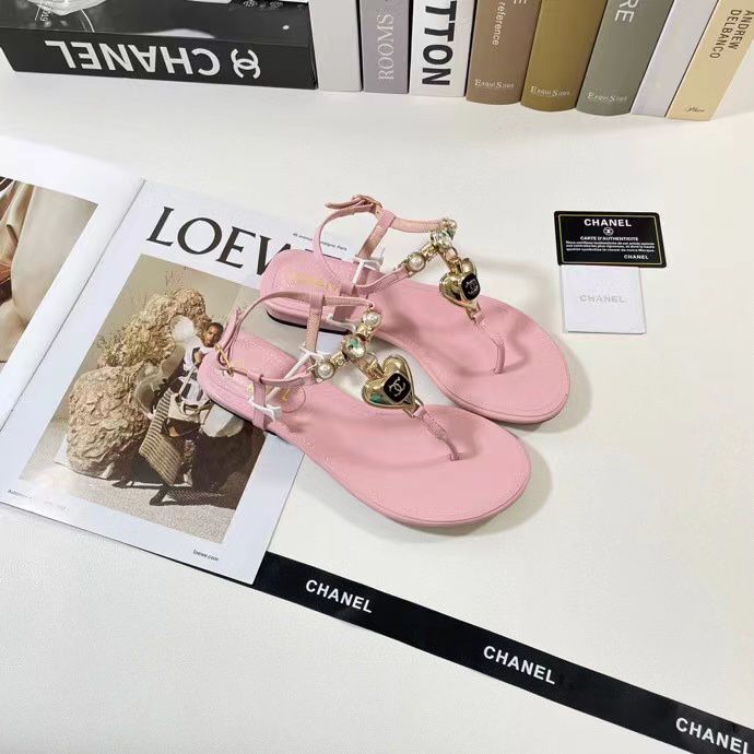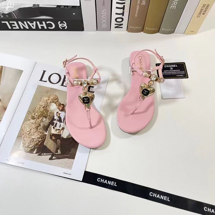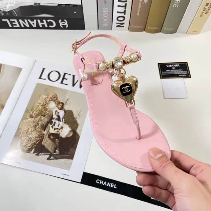 Chanel Shiny Pearl Crystal Cc Heart Thong Sandals Light Pink