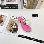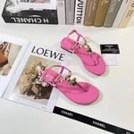 Chanel Shiny Pearl Crystal Cc Heart Thong Sandals Pink